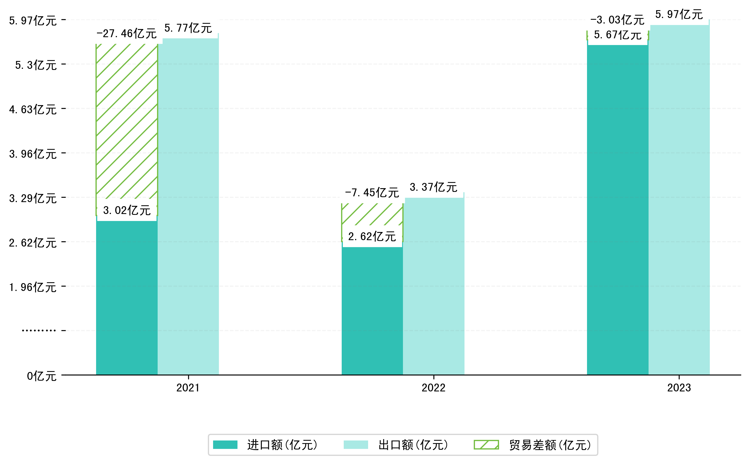 以美元计,2023年1-3月汉中市贸易差额为446,2144万美元(贸易顺差),相比上年同期减少了721,7066万美元,同比减少-61.79%。
