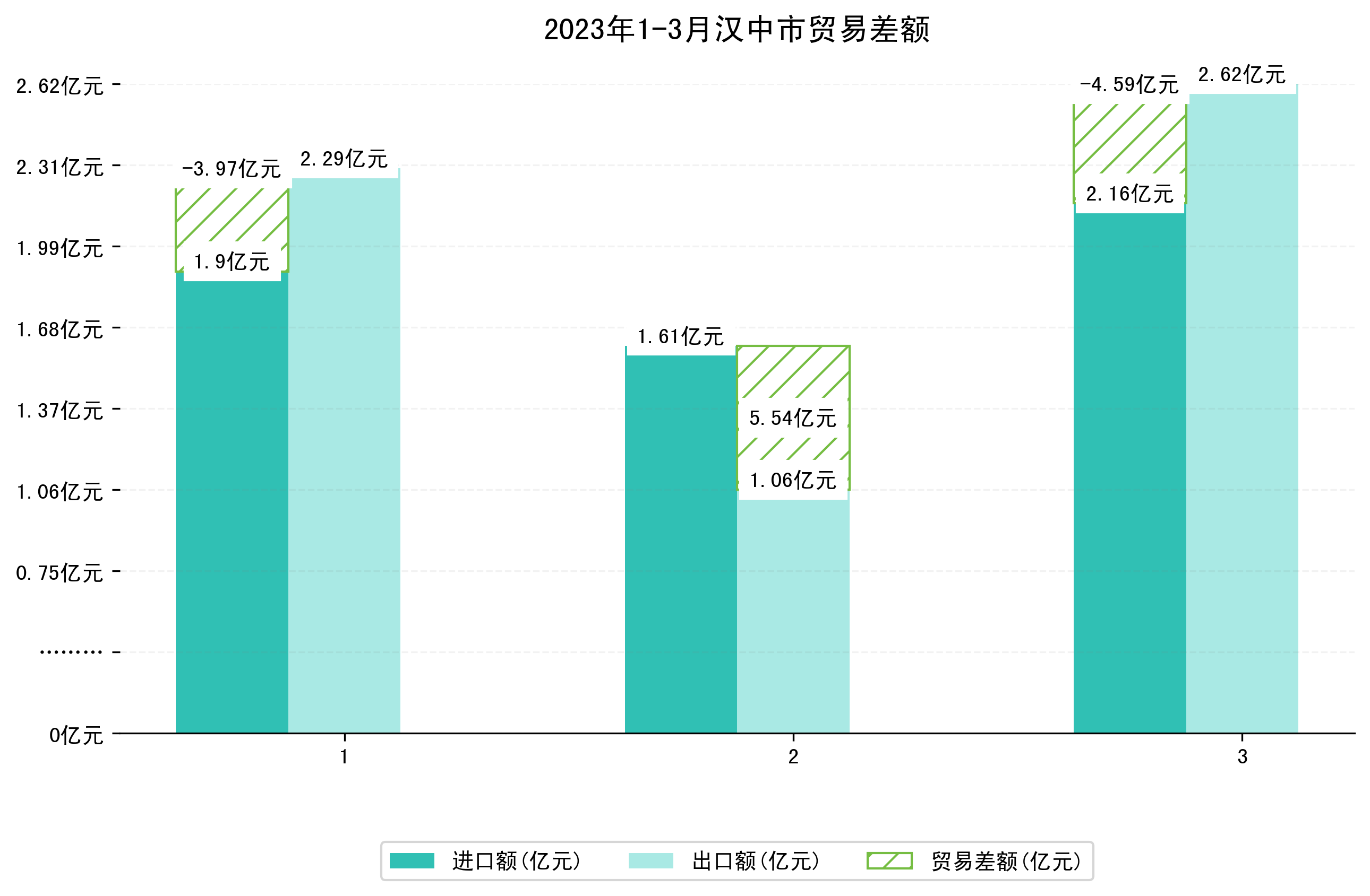 2023年3月汉中市进出口总额及进出口差额统计分析