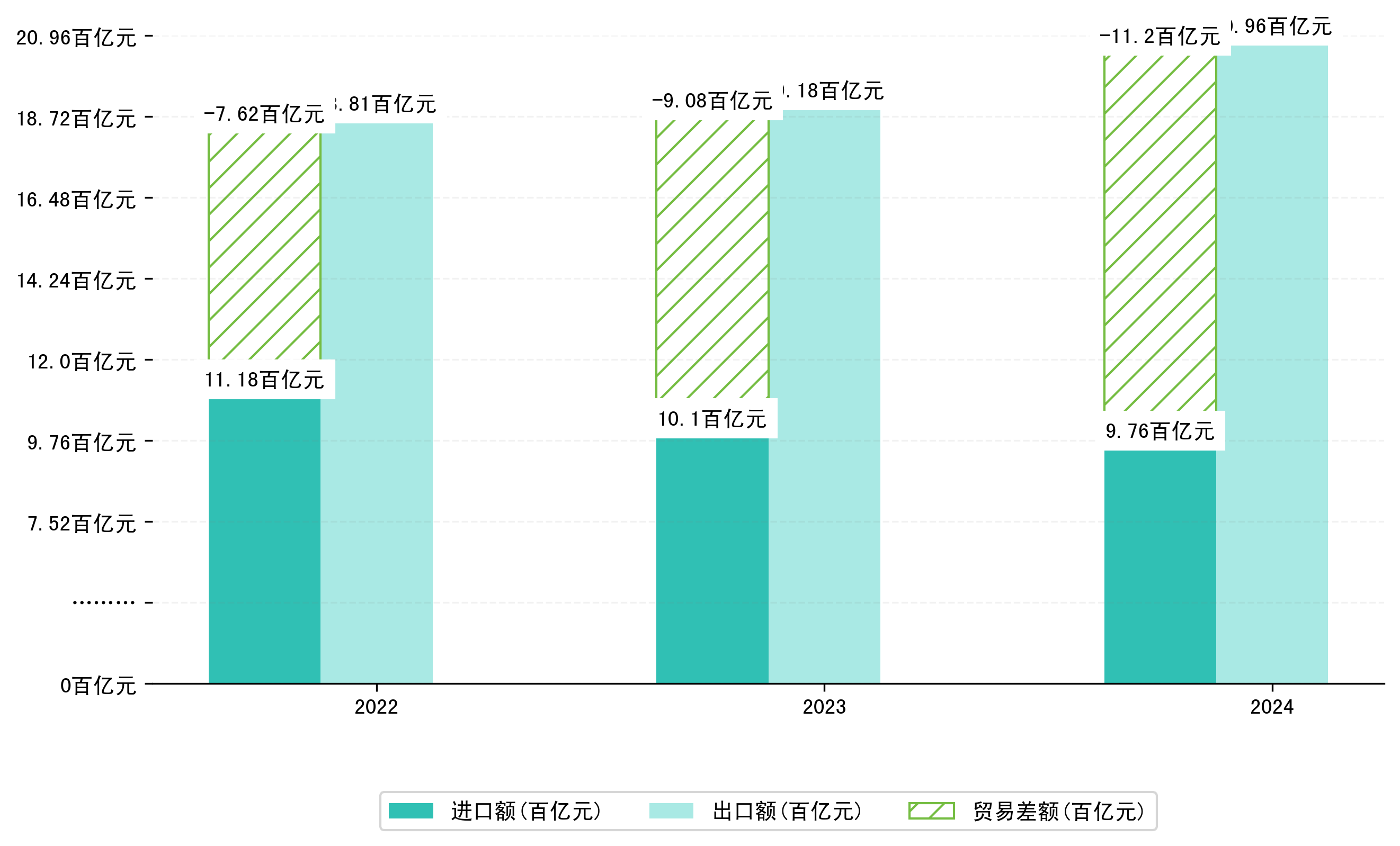 以美元计,2024年10月合肥市贸易差额为15,0713,4437万美元(贸易顺差),相比上月增加了2119,6019万美元;相比上年同期增加了7,3859,3709万美元,同比增加96.1%。