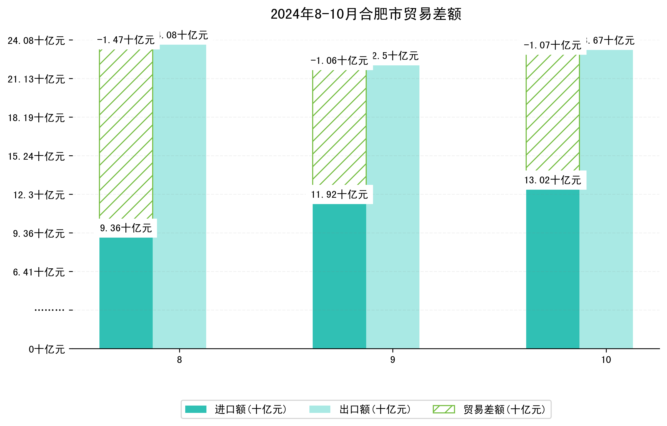 2024年10月合肥市进出口总额及进出口差额统计分析