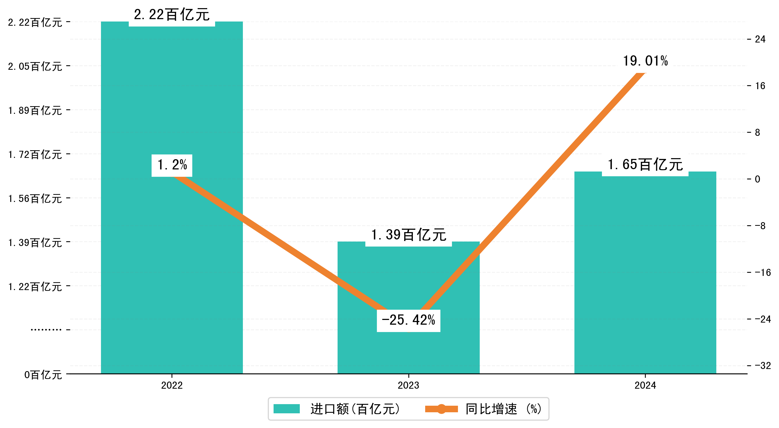 以人民币计,2024年1-2月合肥市进口额为165,4571.5863万元,相比上年同期增加了26,4281.6938万元,同比增加了19.00%。
