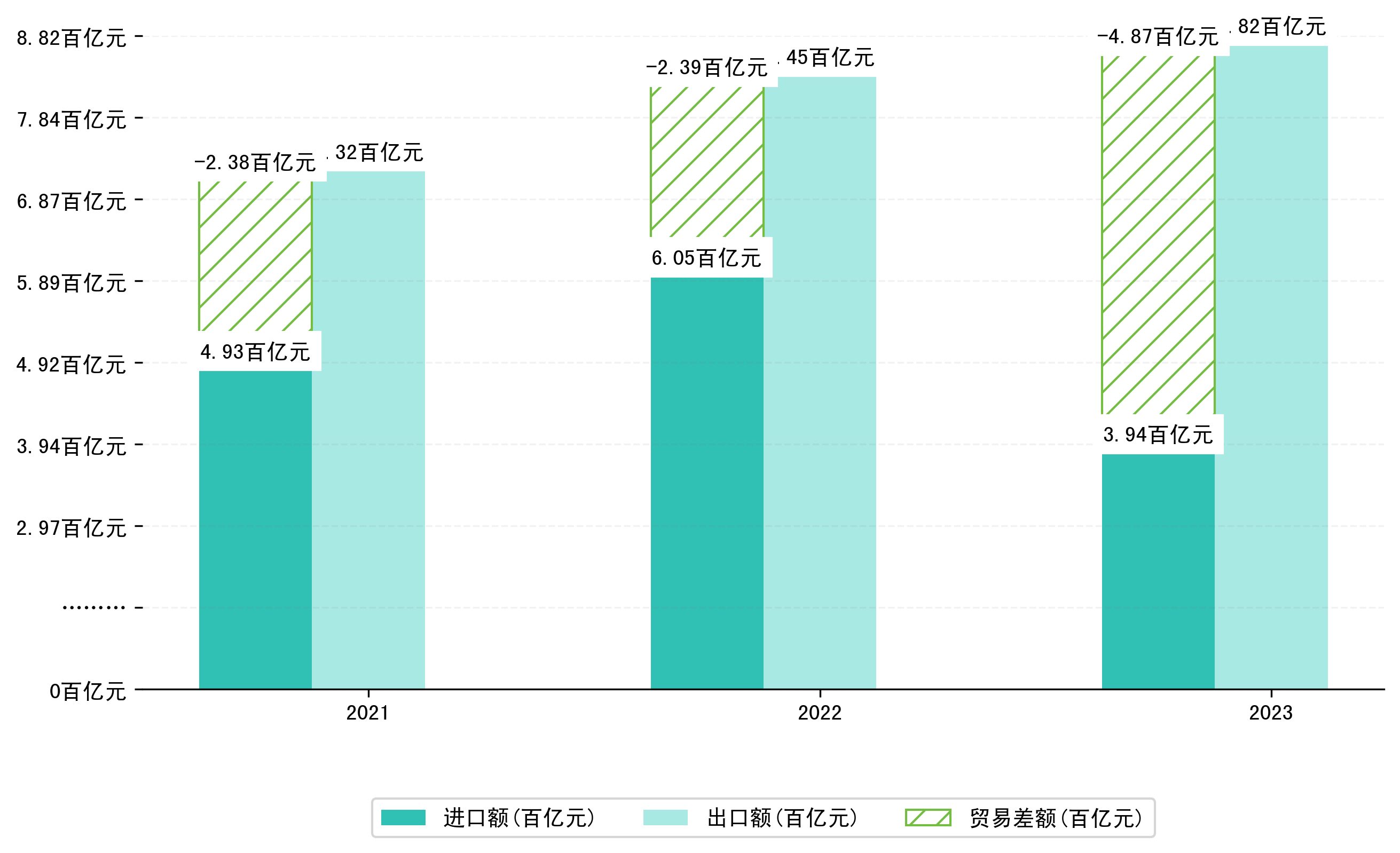 以美元计,2023年1-5月合肥市贸易差额为70,9840,8045万美元(贸易顺差),相比上年同期增加了33,4097,8976万美元,同比增加88.92%。