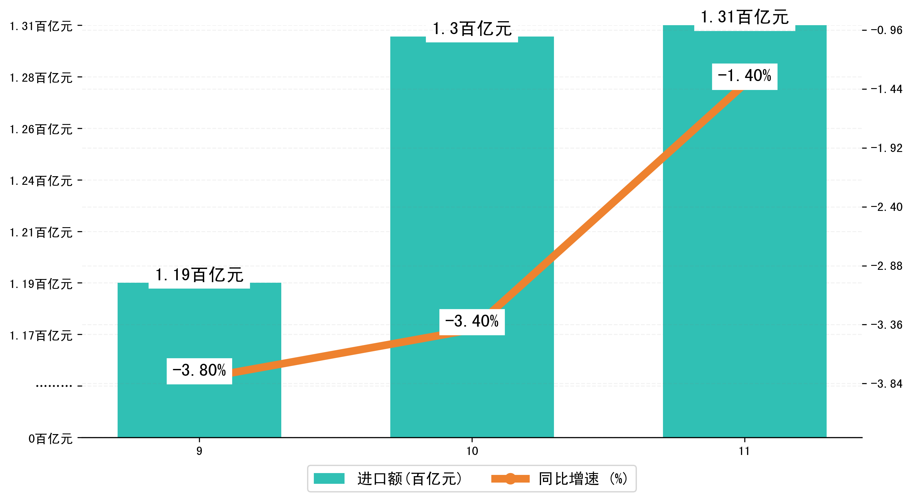 (图三:2024年9-11月合肥市进口额)