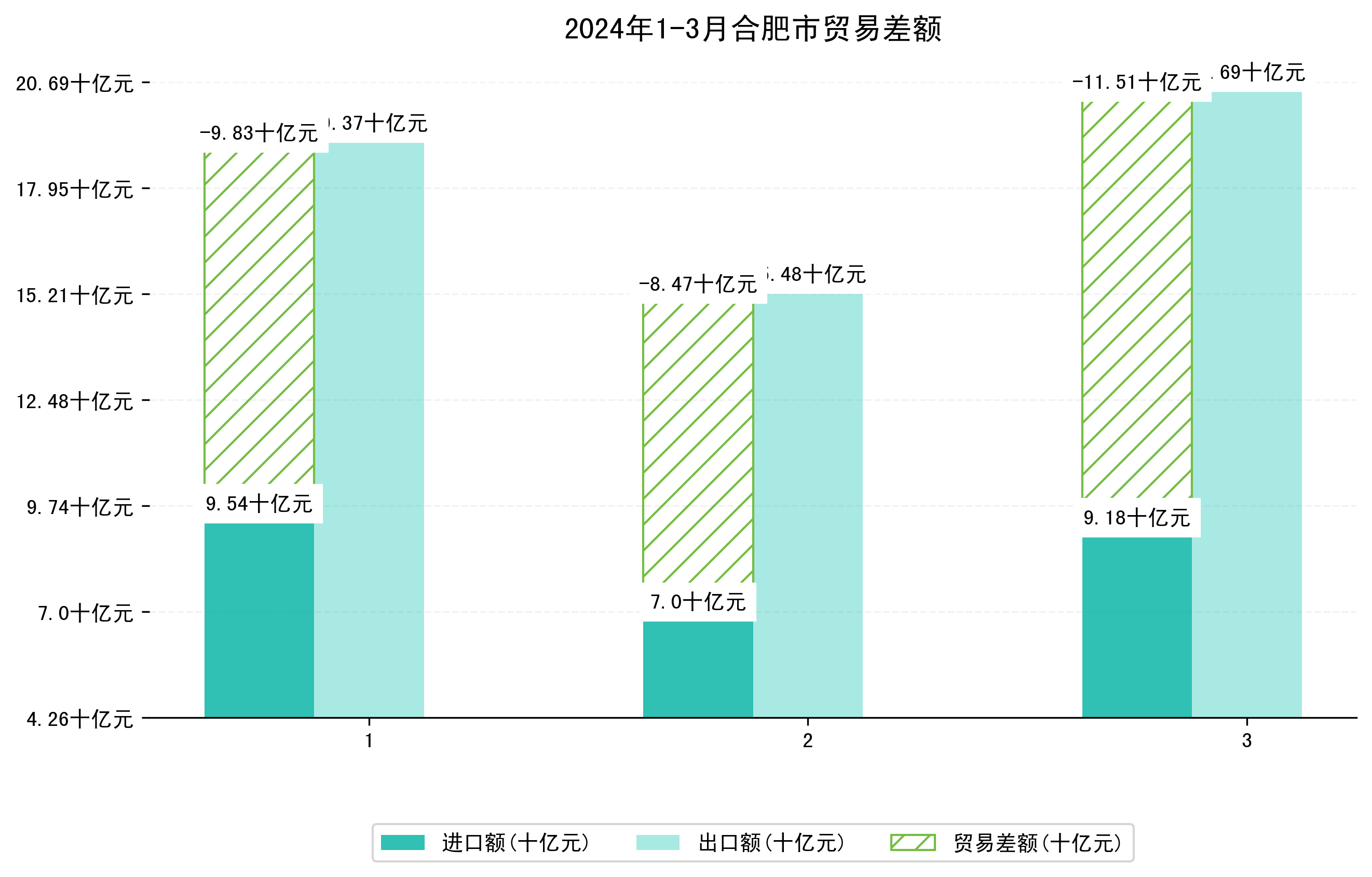 (图四:2024年1-3月合肥市贸易差额)