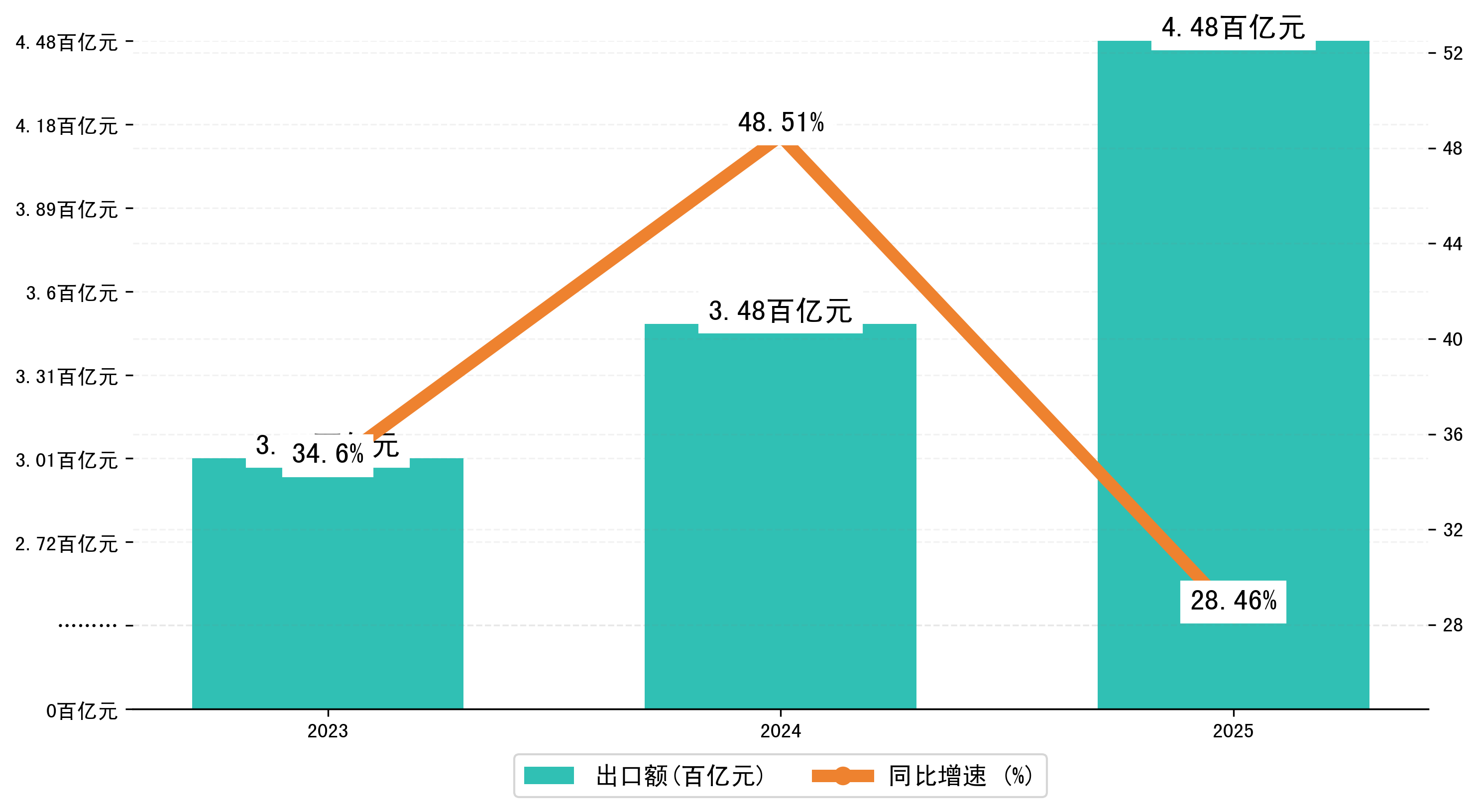 以人民币计,2025年1-2月合肥市出口额为447,6771.4437万元,相比上年同期增加了99,1894.601万元,同比增加了28.60%。
