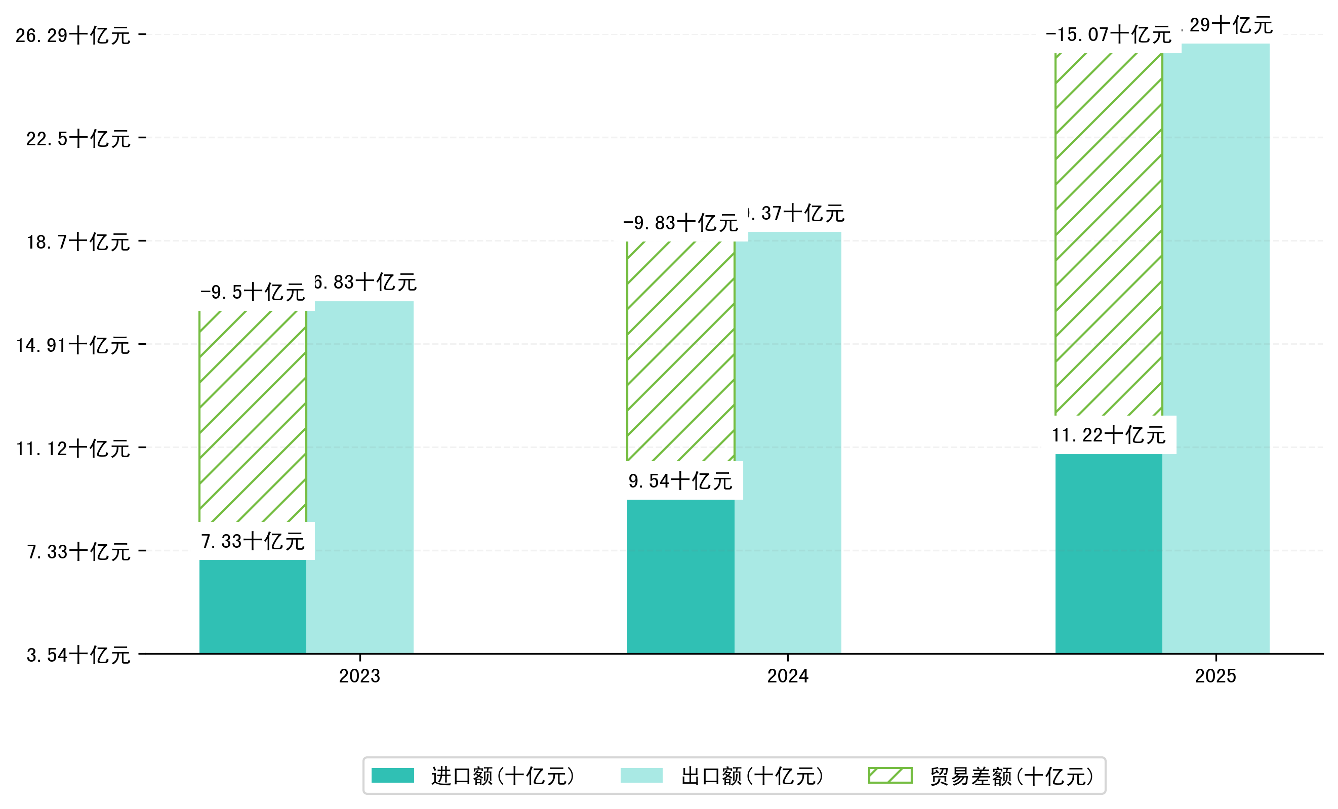 以美元计,2025年1-1月合肥市贸易差额为20,9593,7641万美元(贸易顺差),相比上年同期增加了7,1636,9935万美元,同比增加51.93%。