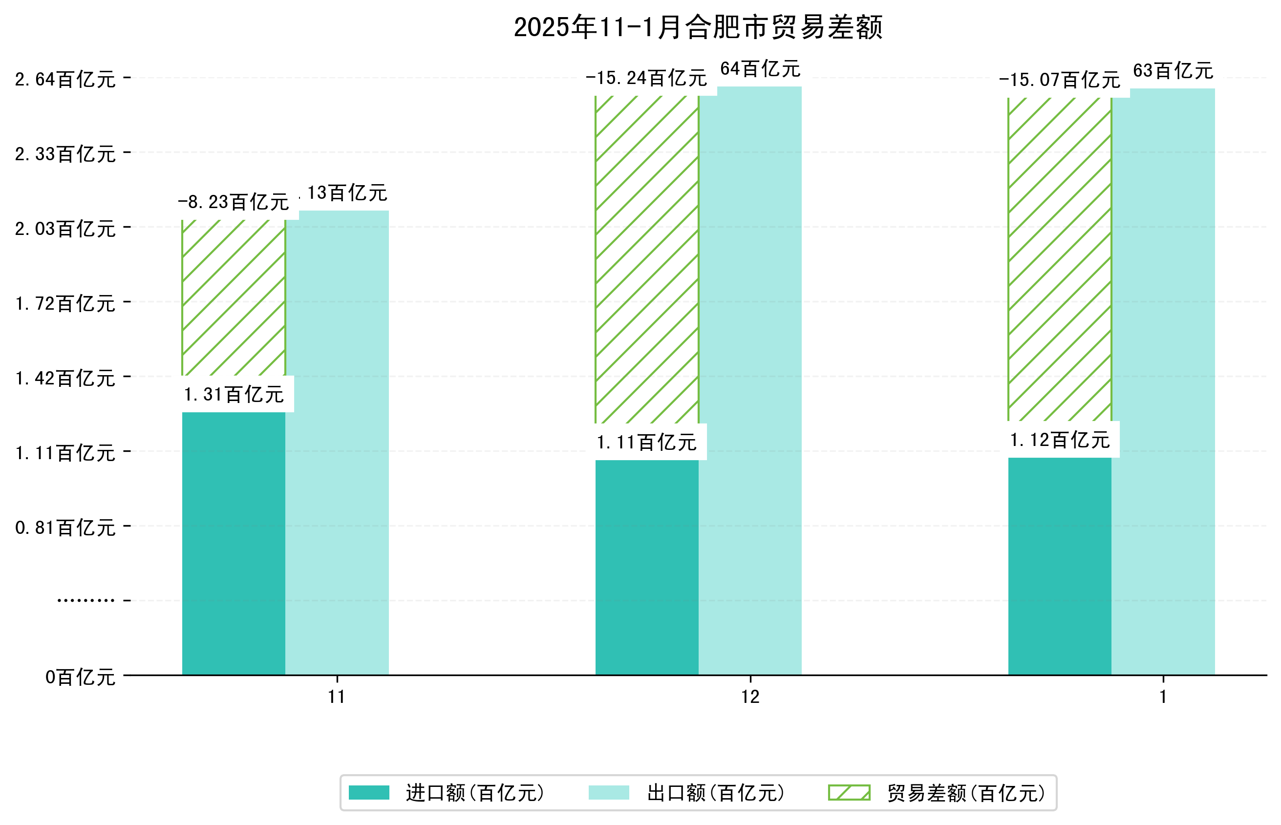 2025年1月合肥市进出口总额及进出口差额统计分析