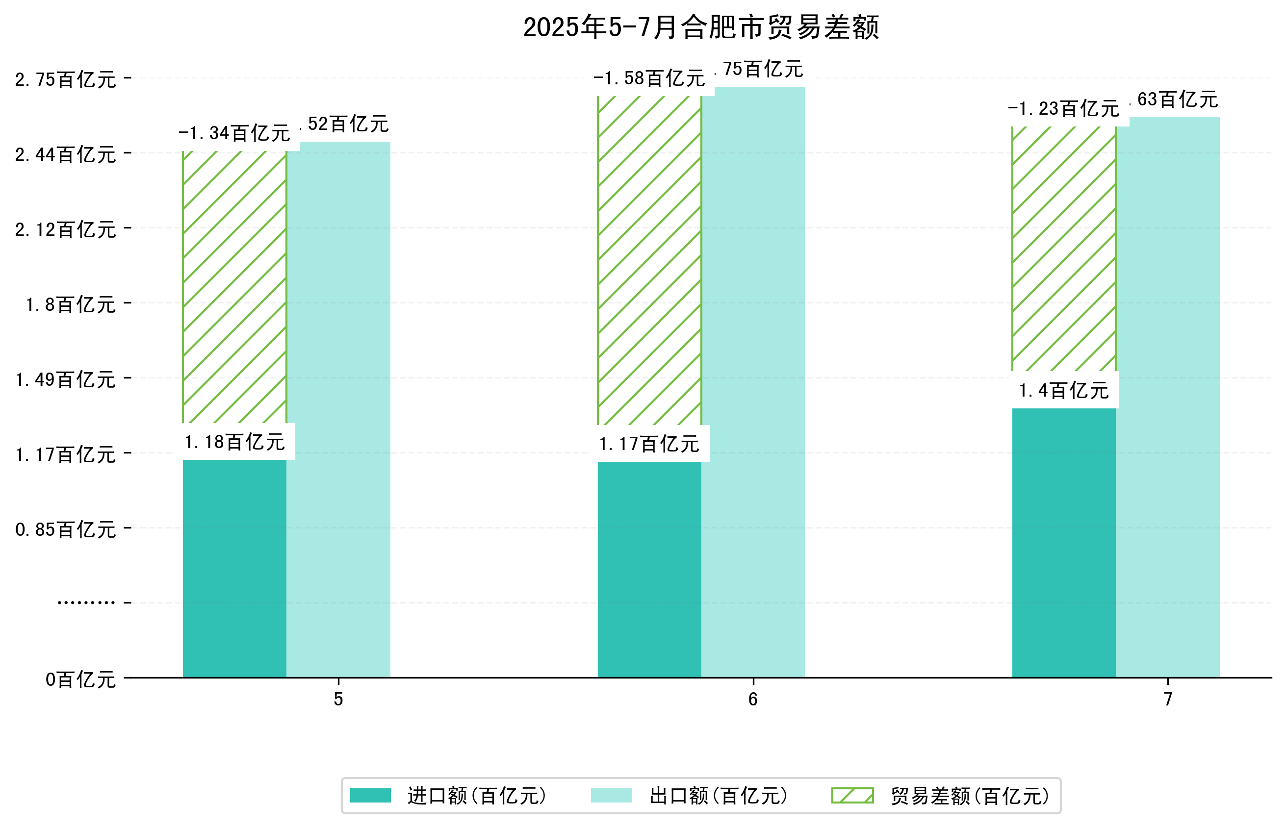2025年7月合肥市进出口总额及进出口差额统计分析