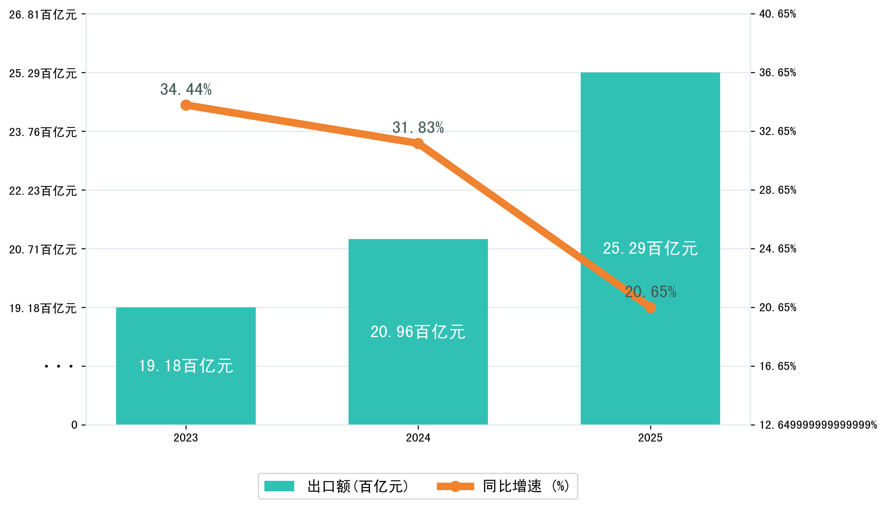以人民币计,2025年1-10月合肥市出口额为2528,6052.5647万元,相比上年同期增加了432,7744.8321万元,同比增加了20.60%。