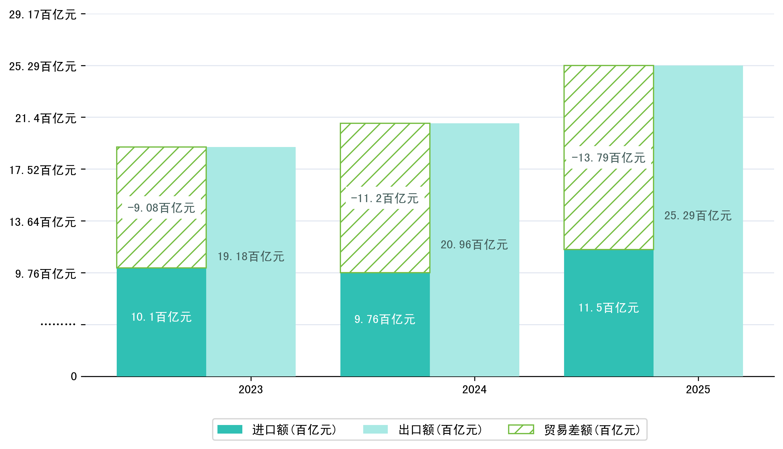 以美元计,2025年1-10月合肥市贸易差额为192,2539,0642万美元(贸易顺差),相比上年同期增加了34,7157,0853万美元,同比增加22.04%。