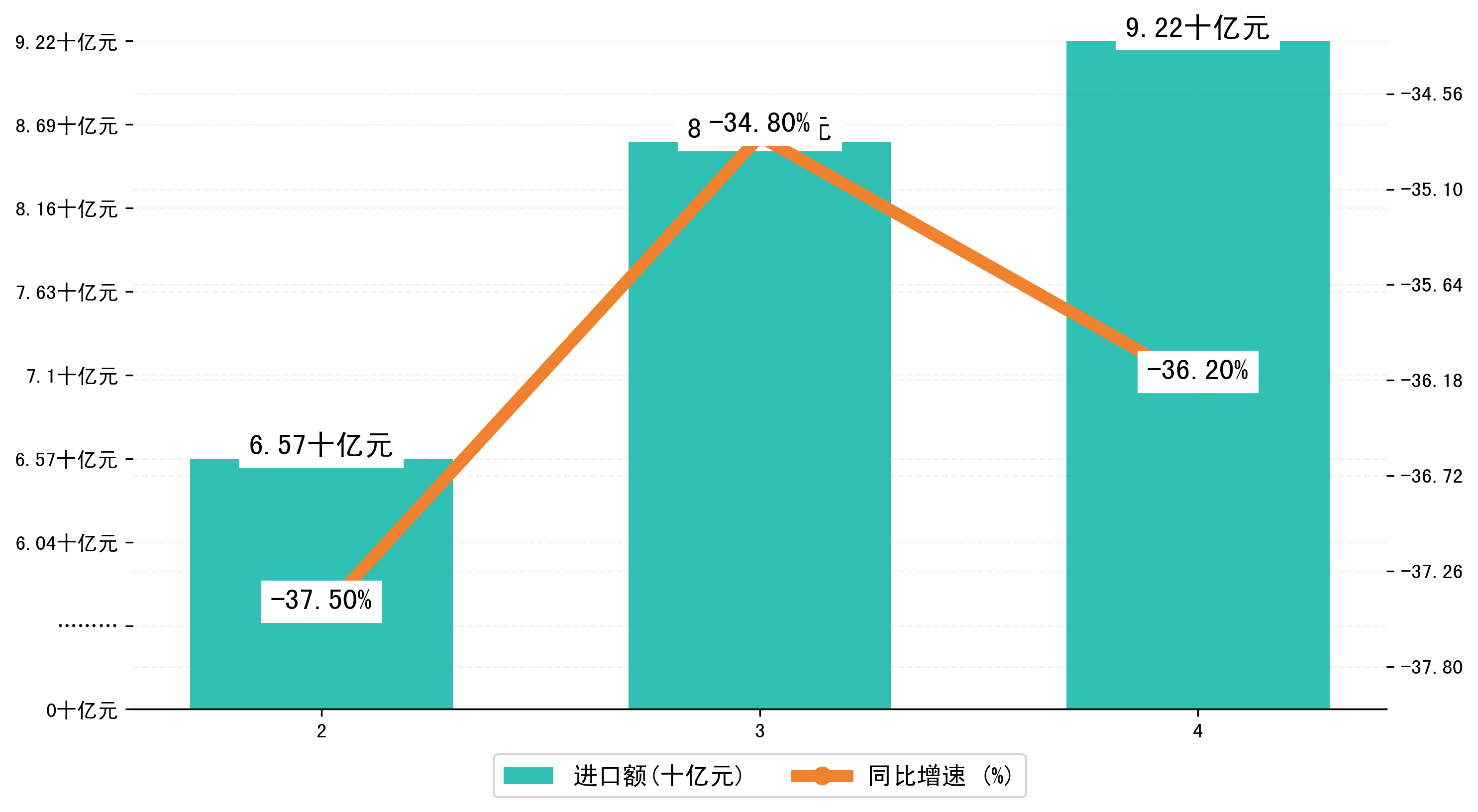 以美元计,2023年1-4月合肥市进口额为46,1521.7842万美元,相比上年同期减少了31,6583.0239万美元,同比减少-40.80%。