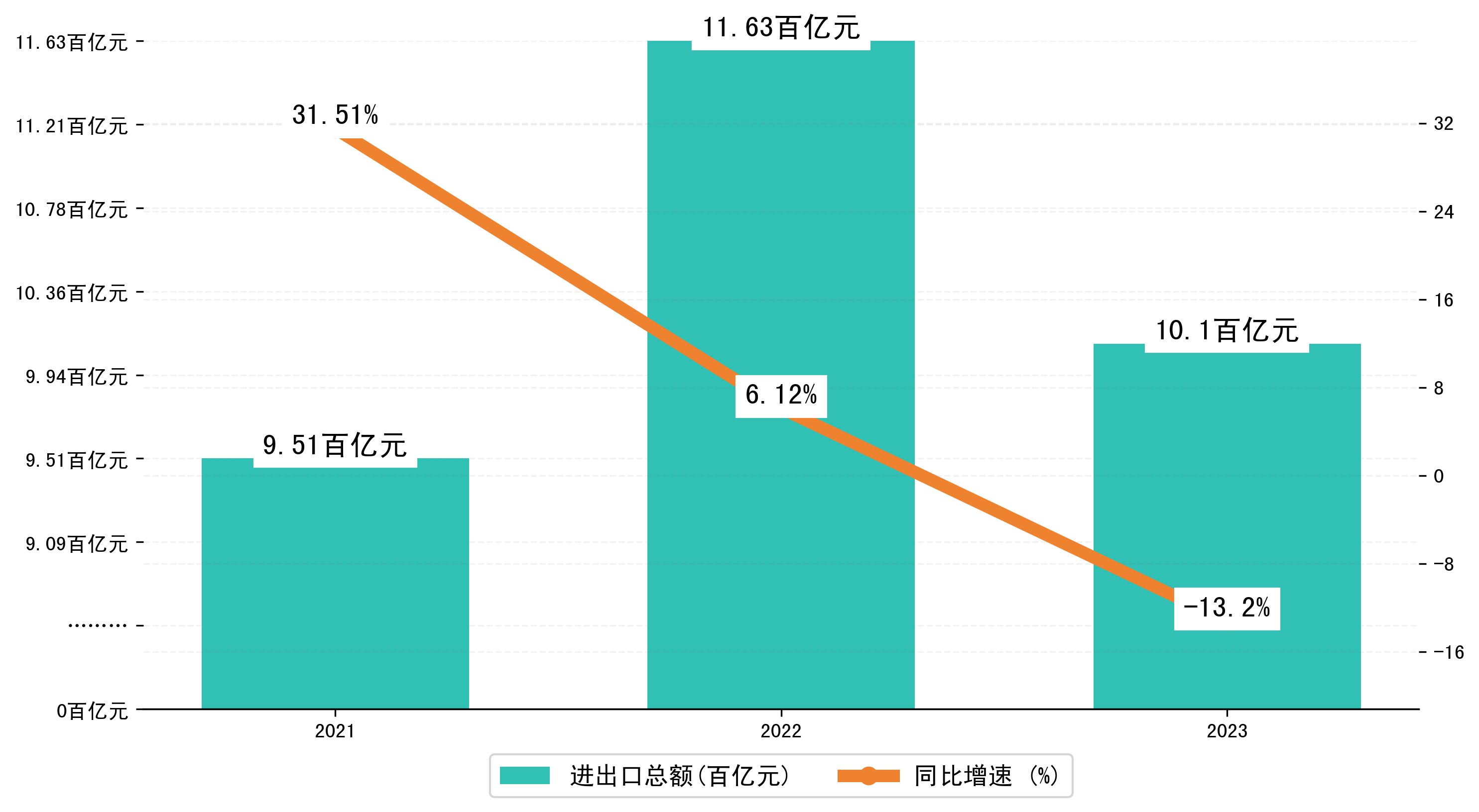 以人民币计,2023年1-4月合肥市进出口总额为1009,5758.4067万元,相比上年同期减少了153,5924.4078万元,同比减少了-13.10%。