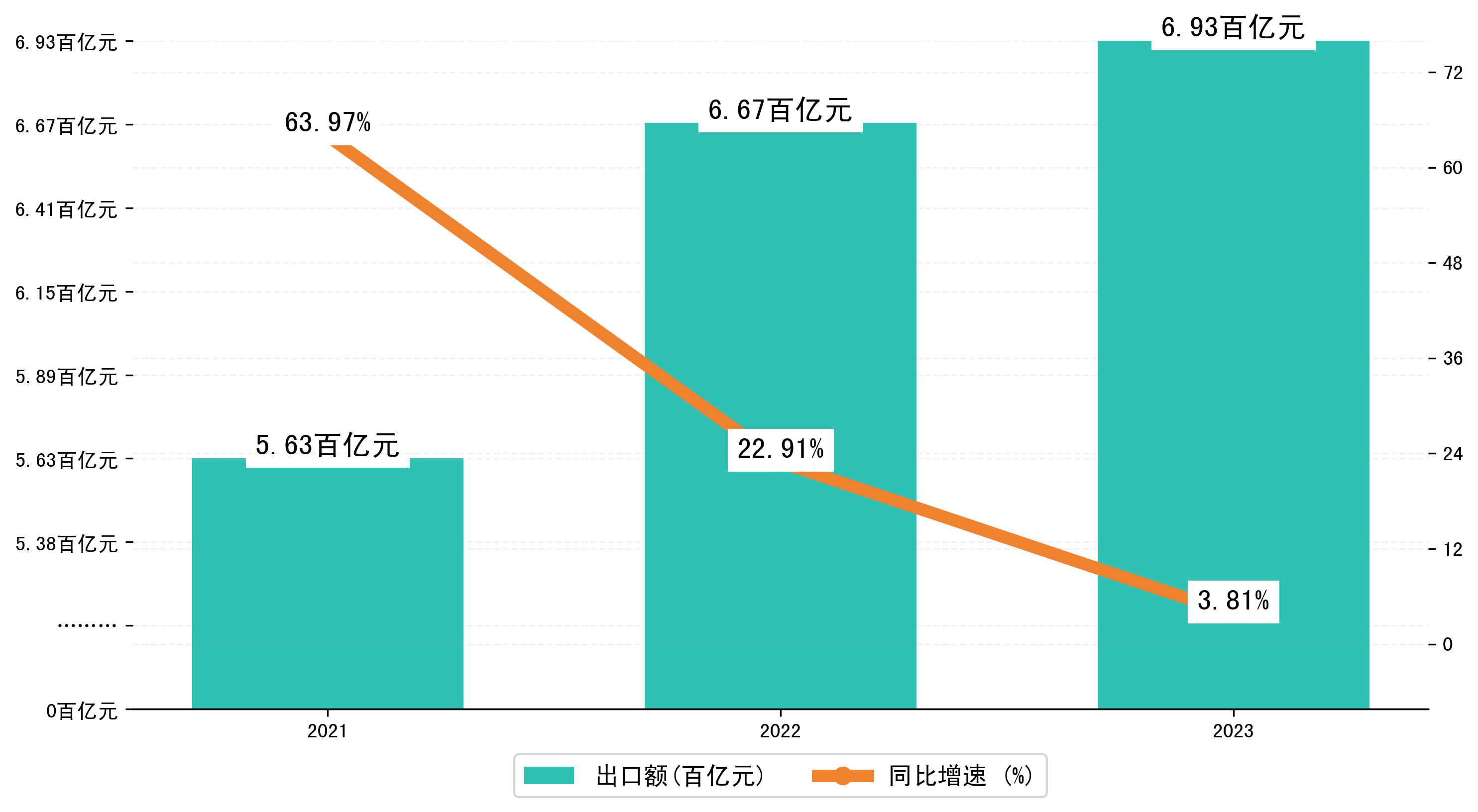 以人民币计,2023年1-4月合肥市出口额为692,5752.8833万元,相比上年同期增加了25,4265.0818万元,同比增加了4.00%。
