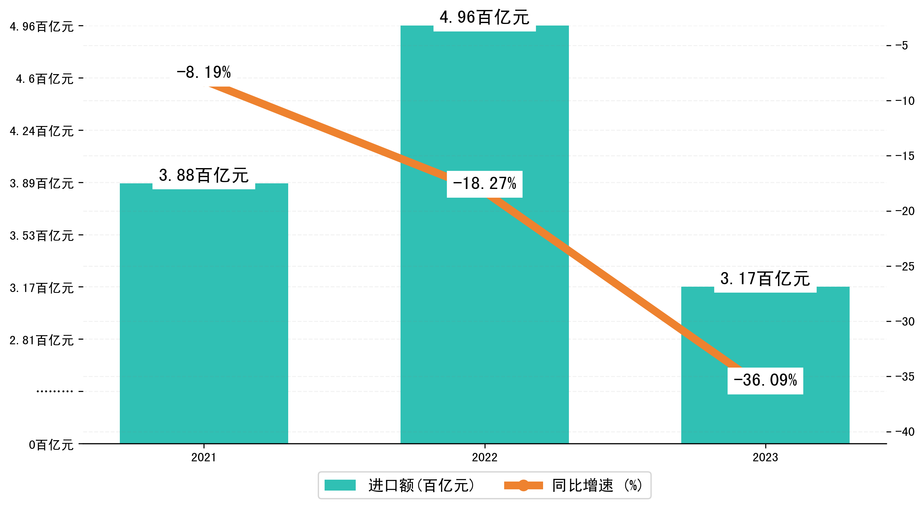 以人民币计,2023年1-4月合肥市进口额为317,0005.5234万元,相比上年同期减少了179,0189.4896万元,同比减少了-36.20%。