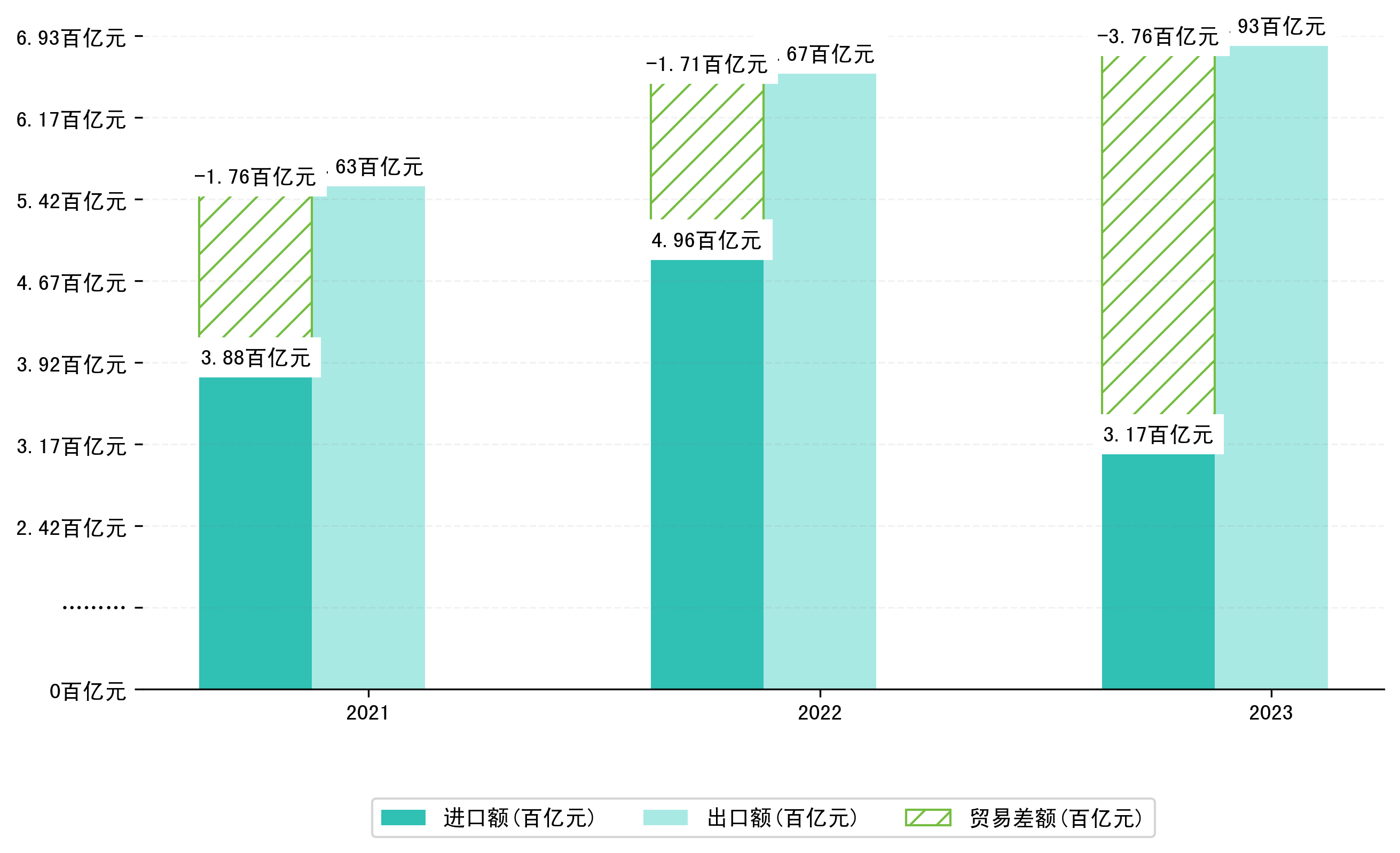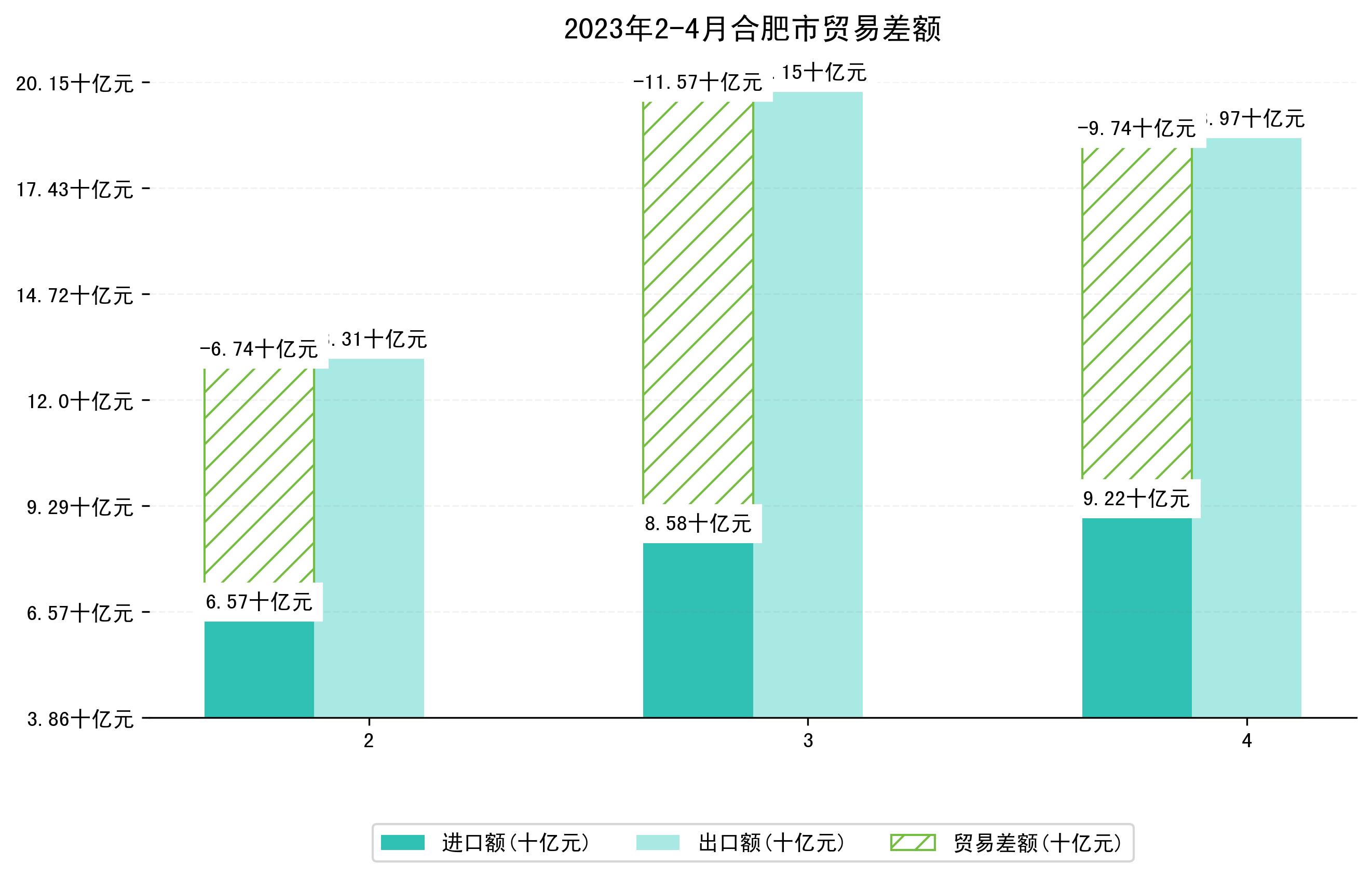 以人民币计,2023年1-4月合肥市贸易差额为375,5747,3599万元(贸易顺差),相比上年同期增加了204,4454,5714万元,同比增加119.47%。