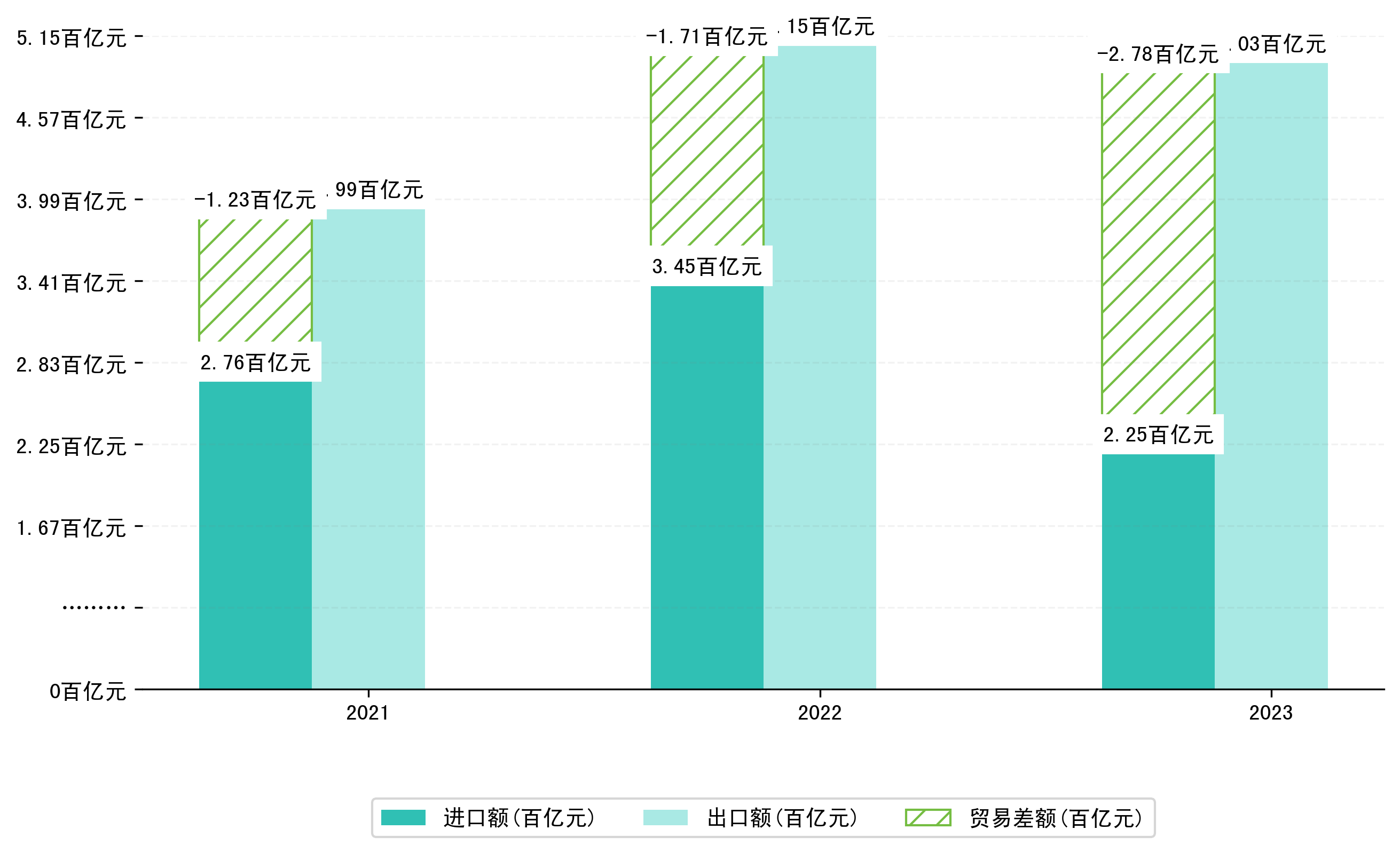 以人民币计,2023年1-3月合肥市贸易差额为278,1008,4352万元(贸易顺差),相比上年同期增加了107,5799,7669万元,同比增加63.09%。