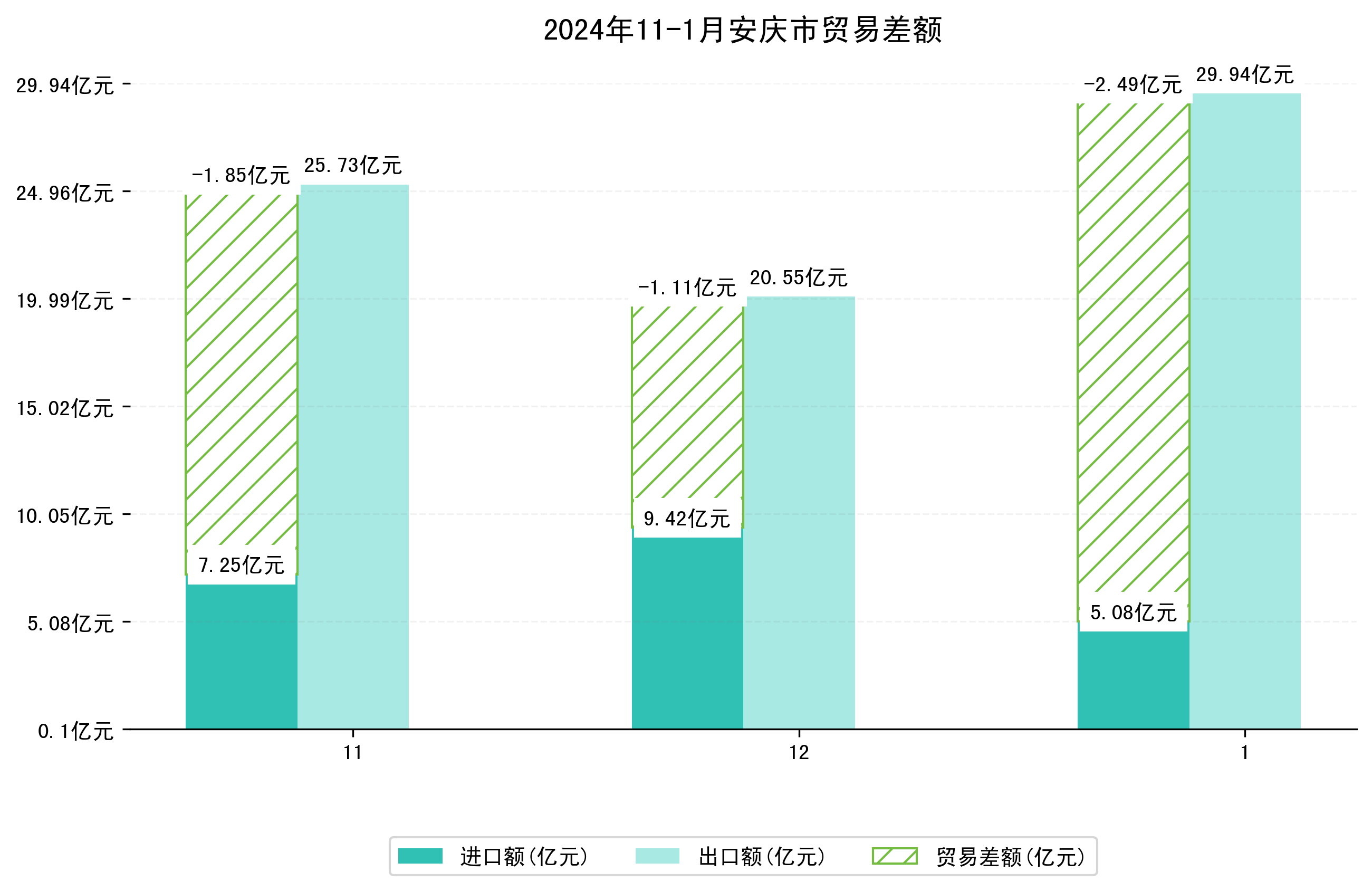 2024年1月安庆市进出口总额及进出口差额统计分析