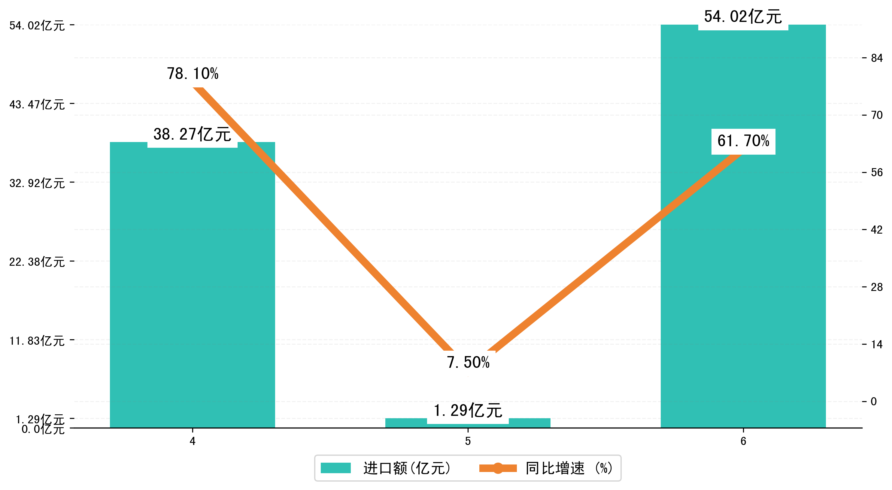 以人民币计,2024年6月黑河市进口额为54,0175.4183万元,相比上月增加了52,7319.252万元;相比上年同期增加了50,0368.4082万元,同比增加了61.70%。