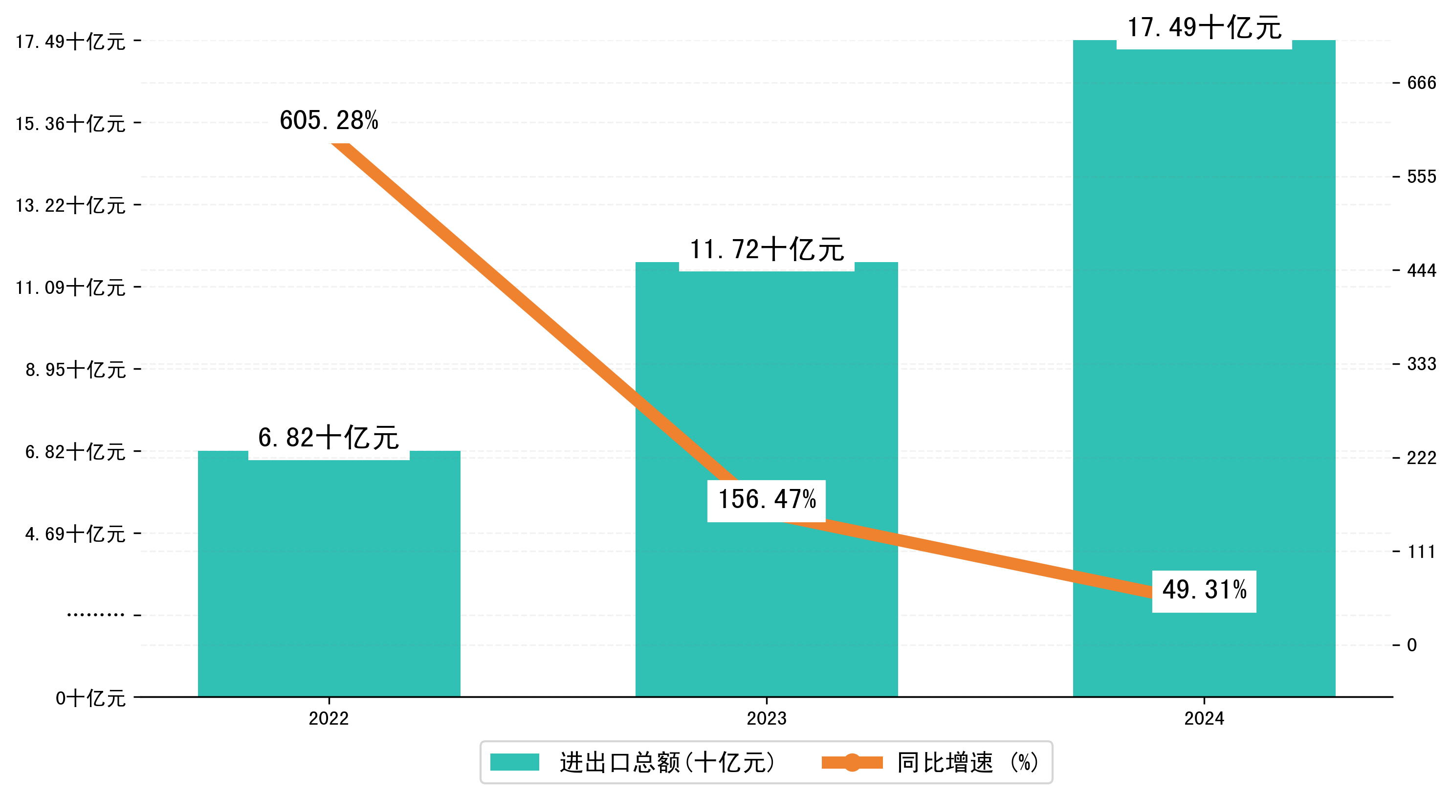 以人民币计,2024年1-6月黑河市进出口总额为174,9254.7809万元,相比上年同期增加了57,7667.4607万元,同比增加了49.30%。