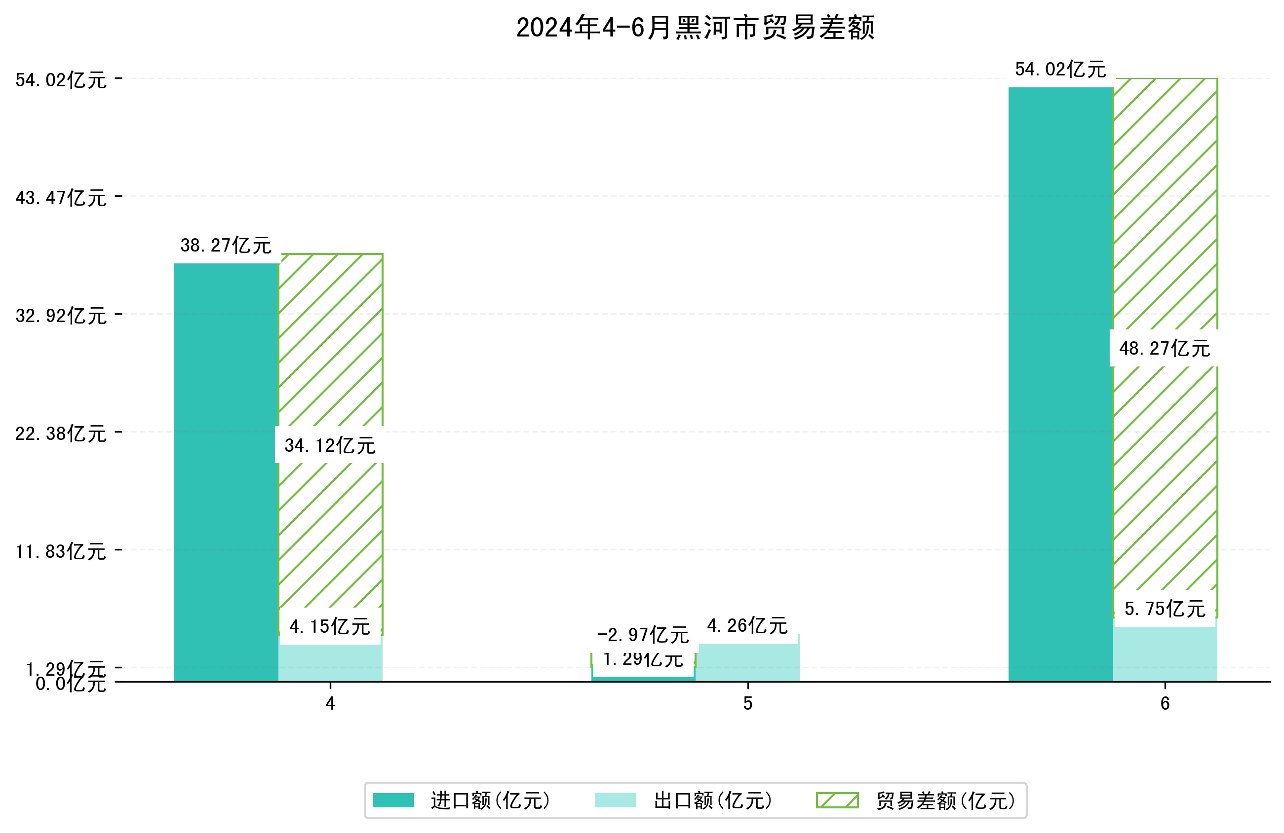 2024年6月黑河市进出口总额及进出口差额统计分析