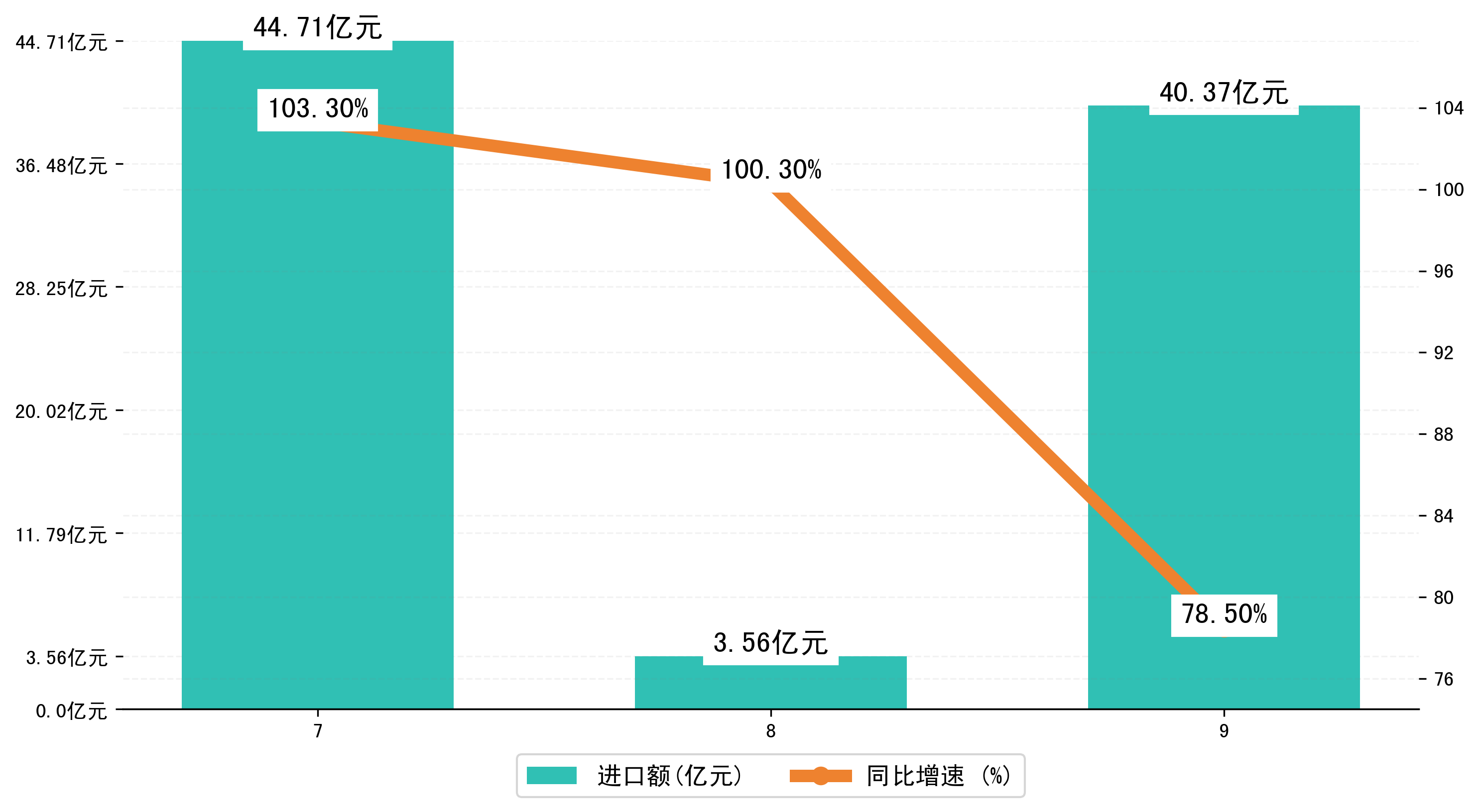 以人民币计,2023年9月黑河市进口额为40,3731.6066万元,相比上月增加了36,8168.1793万元;相比上年同期增加了9,2325.6257万元,同比增加了78.50%。