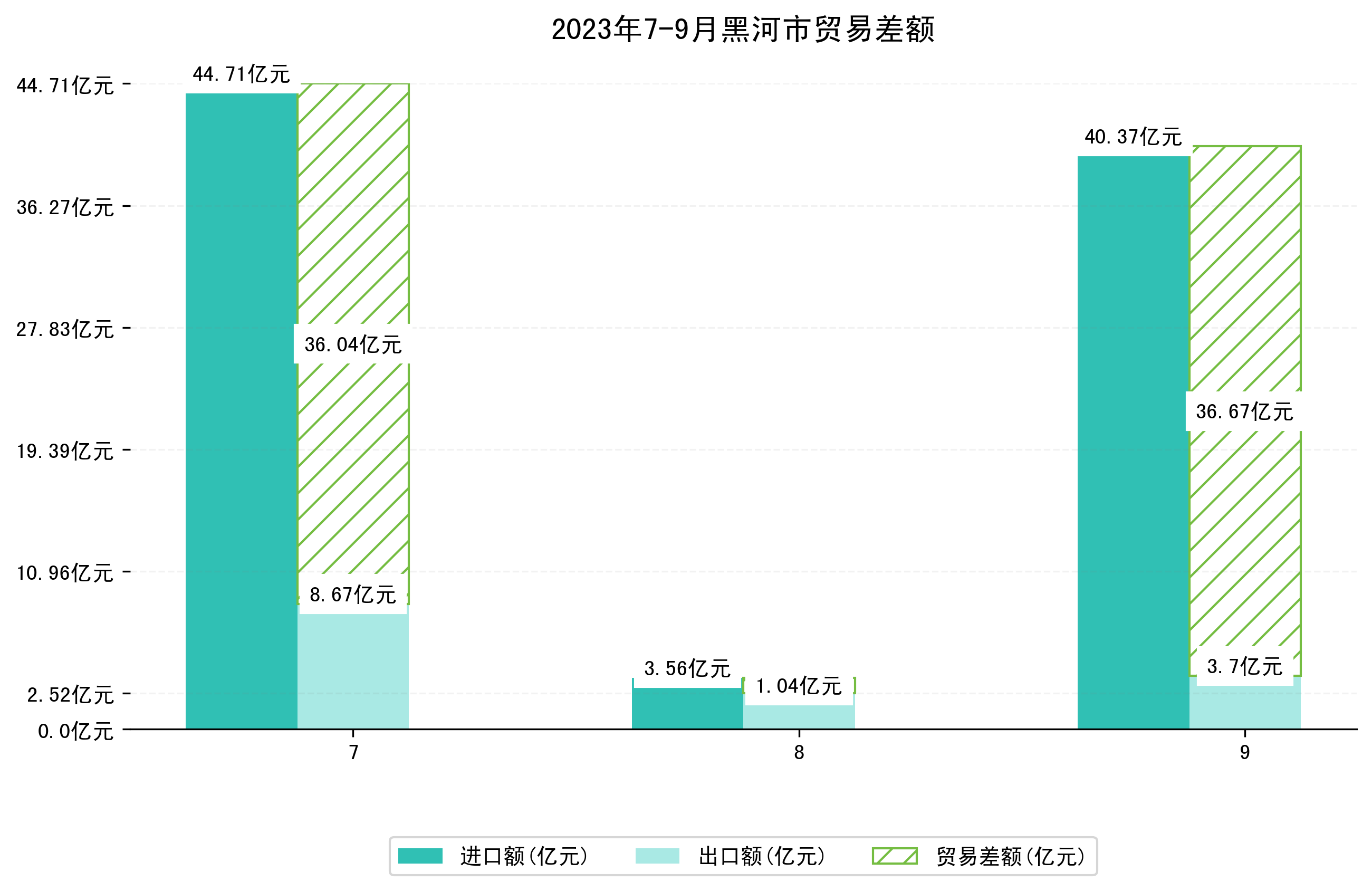 2023年9月黑河市进出口总额及进出口差额统计分析