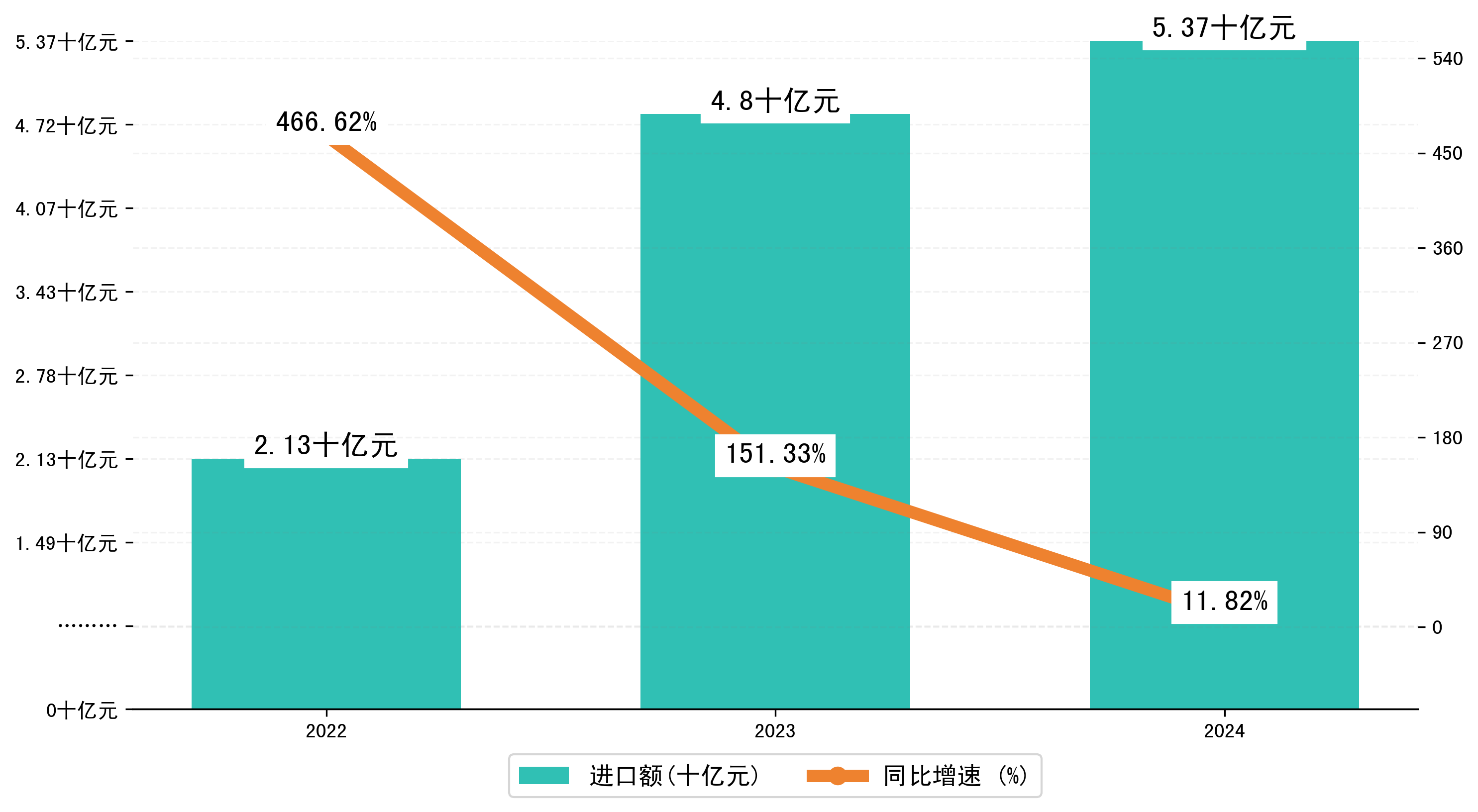 以人民币计,2024年1-2月黑河市进口额为53,6574.977万元,相比上年同期增加了5,6700.7996万元,同比增加了11.80%。