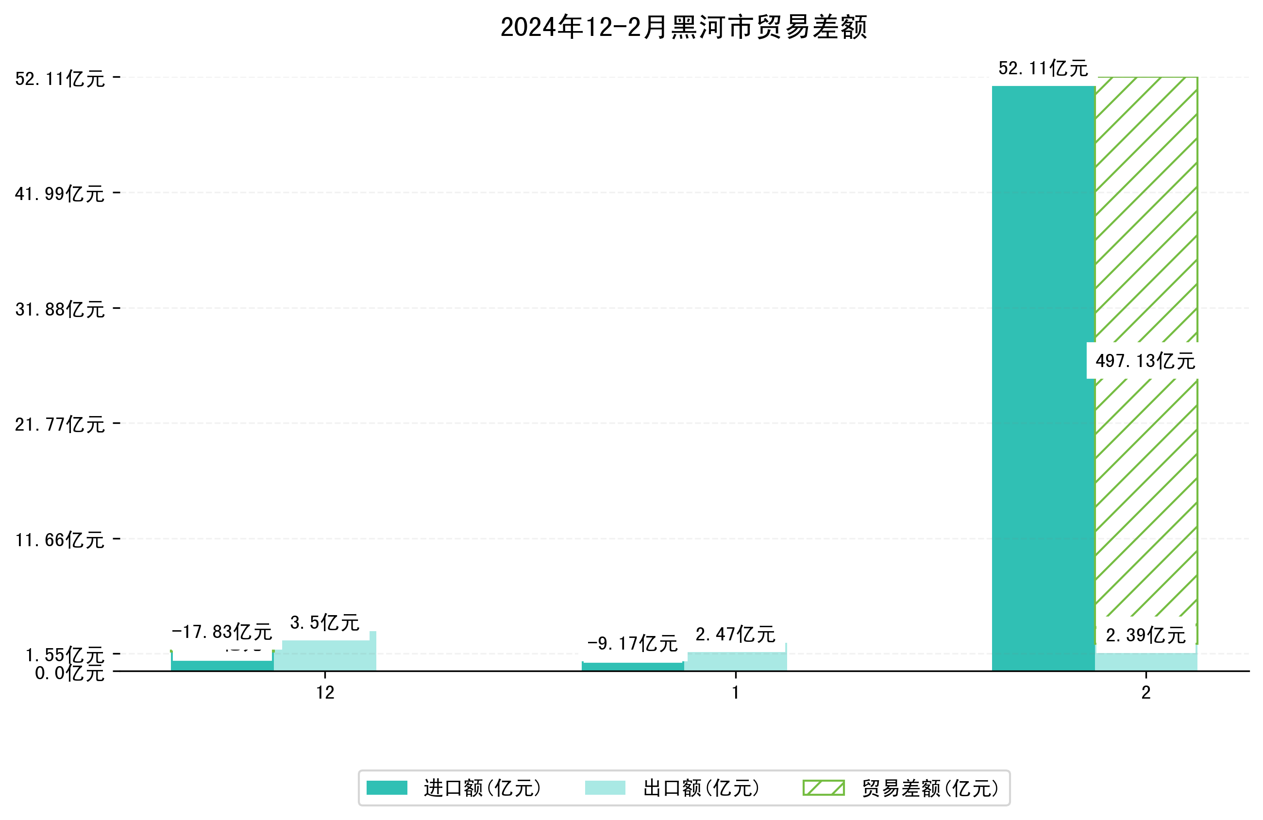 2024年2月黑河市进出口总额及进出口差额统计分析