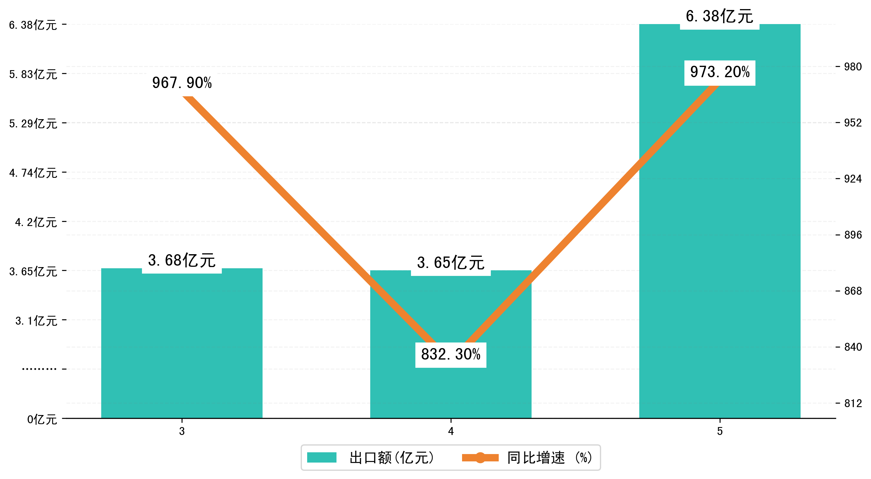 (图二:2023年3-5月黑河市出口额)