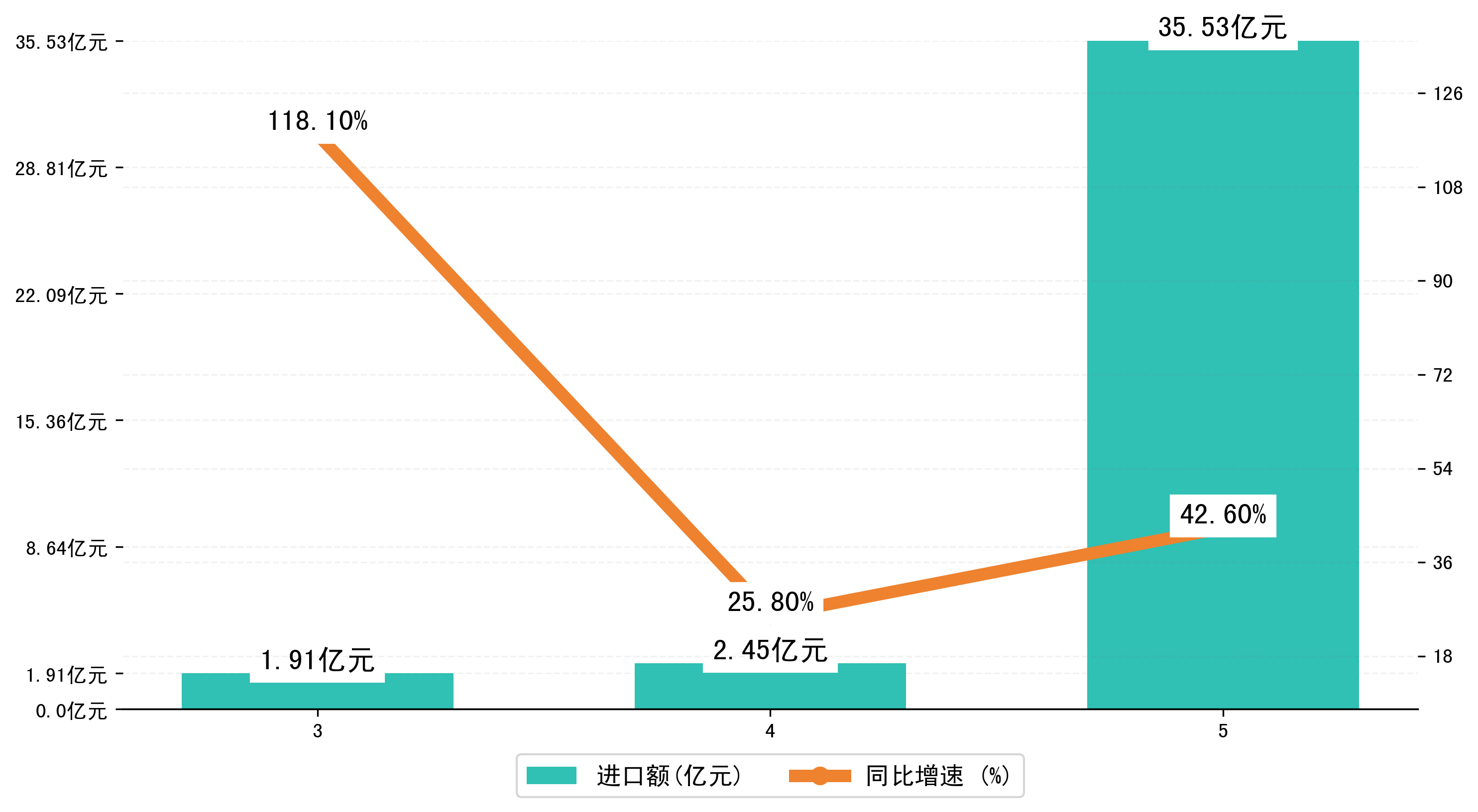 (图三:2023年3-5月黑河市进口额)