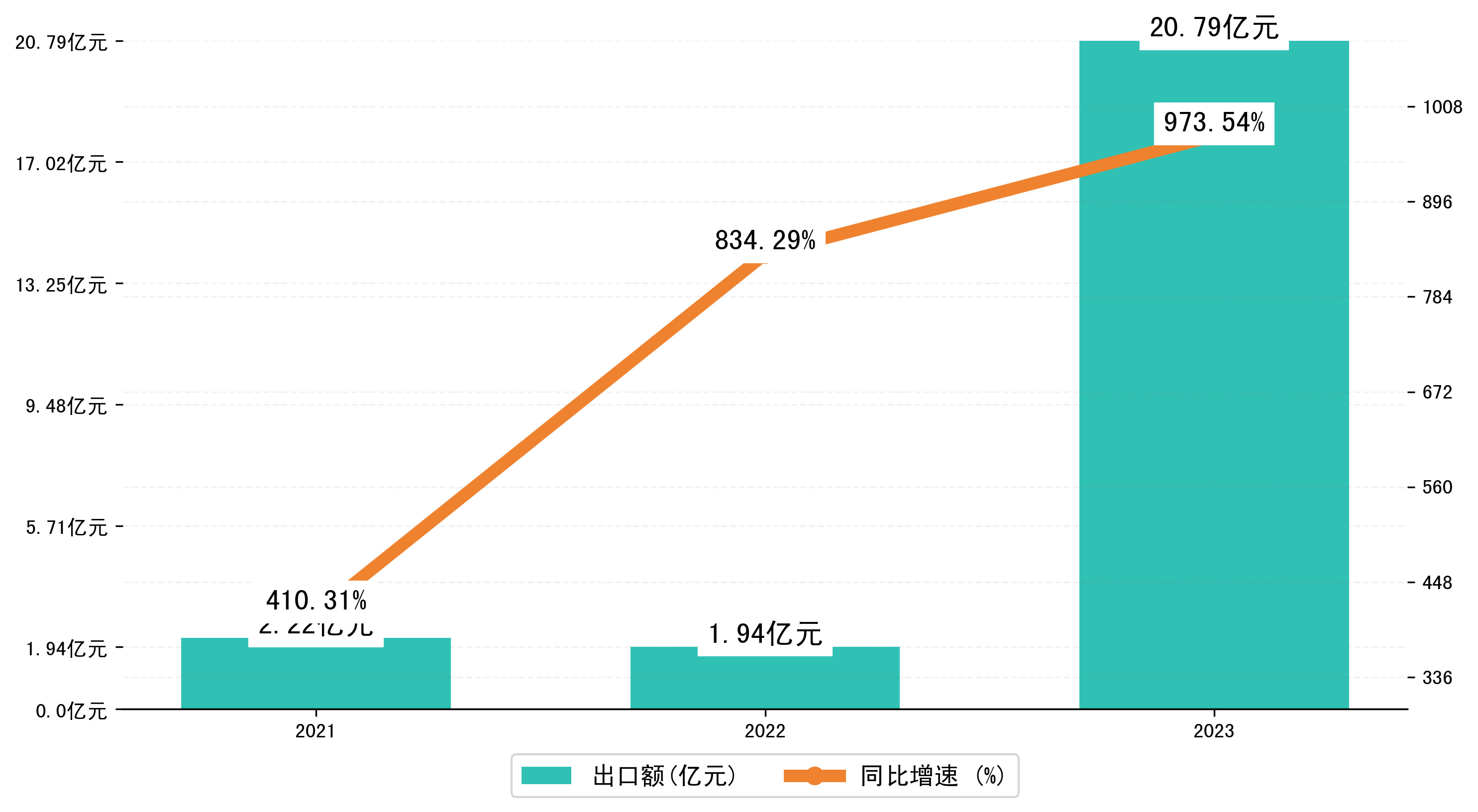 以美元计,2023年1-5月黑河市出口额为3,0130.954万美元,相比上年同期增加了2,7104.5813万美元,同比增加895.30%。