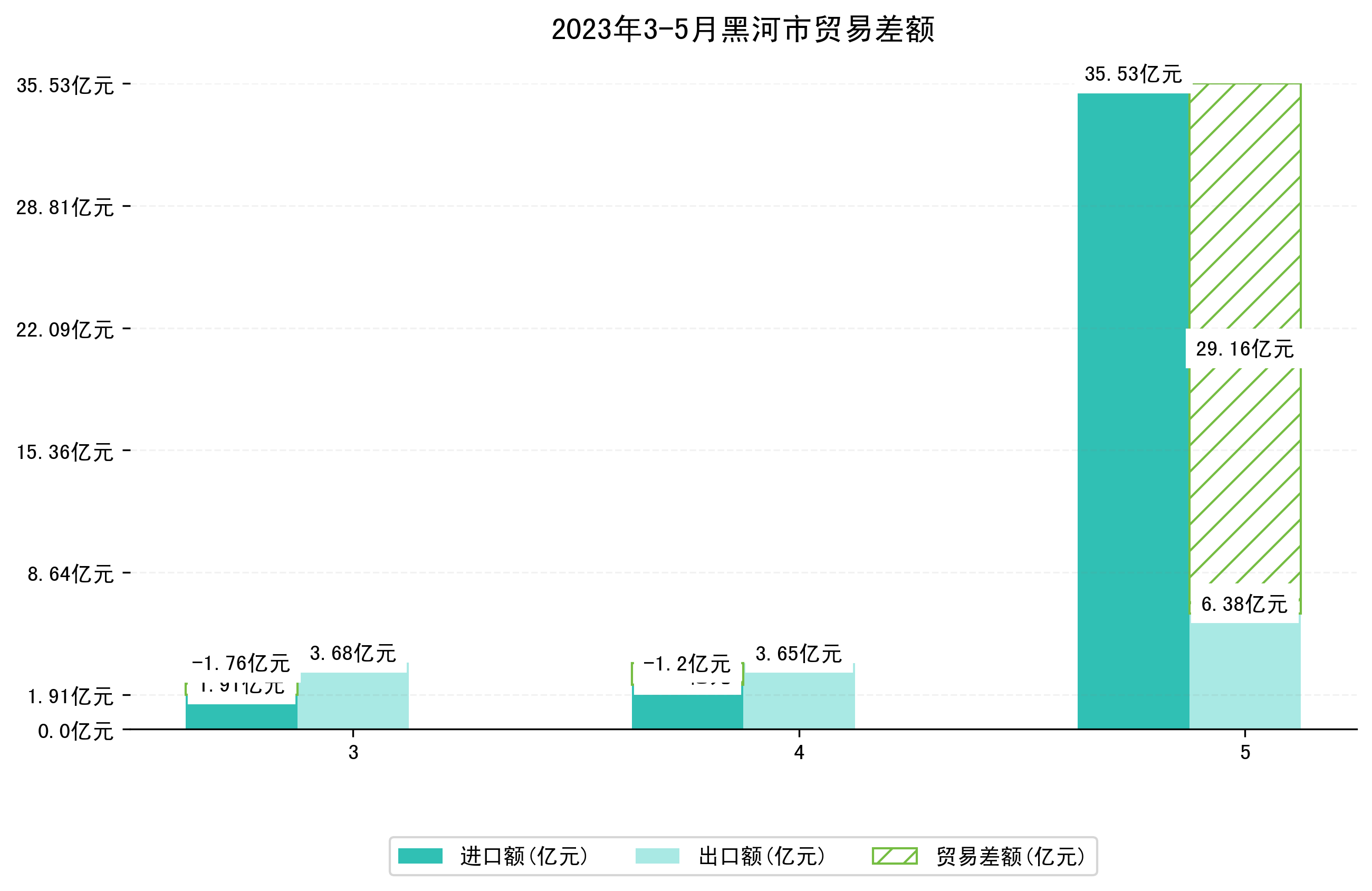 (图四:2023年3-5月黑河市贸易差额)