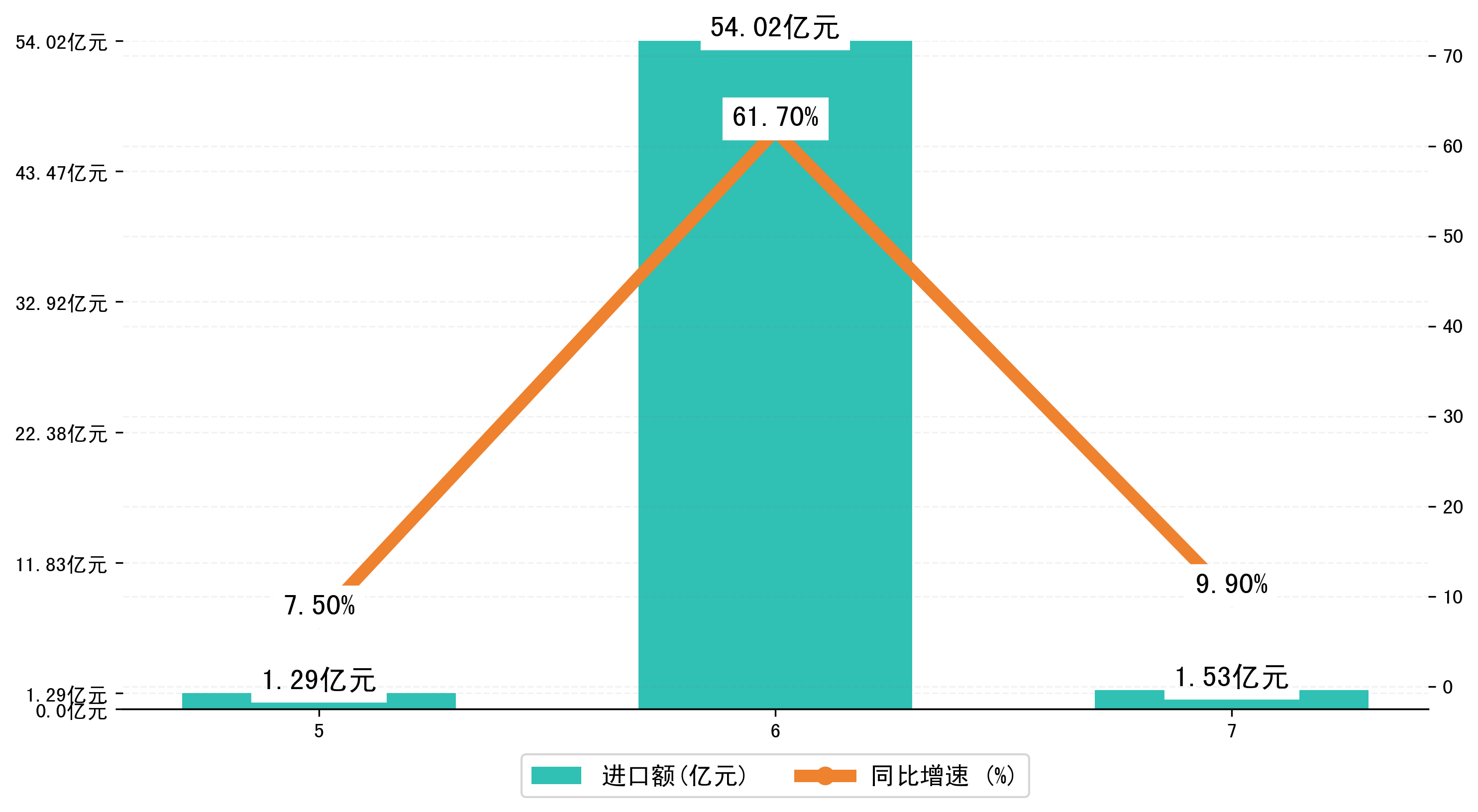 以人民币计,2024年1-7月黑河市进口额为150,0500.709万元,相比上年同期增加了13,4704.245万元,同比增加了9.90%。