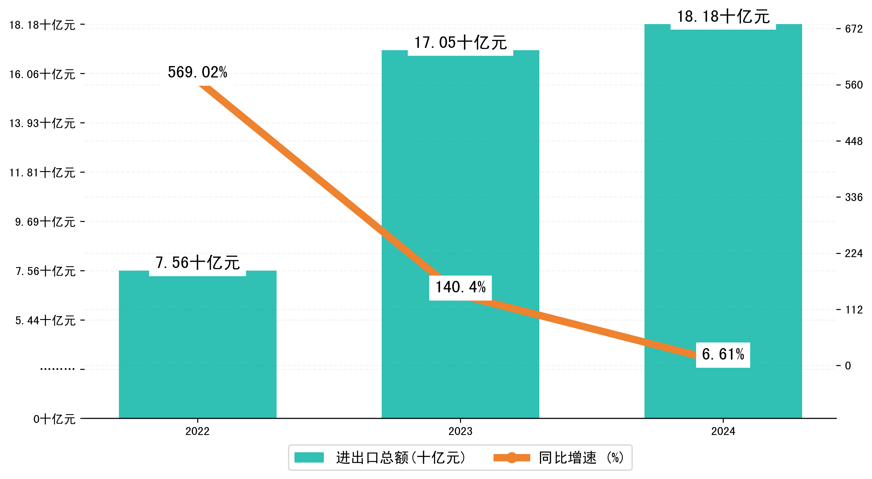 以人民币计,2024年1-7月黑河市进出口总额为181,8119.0025万元,相比上年同期增加了11,2654.8704万元,同比增加了6.60%。