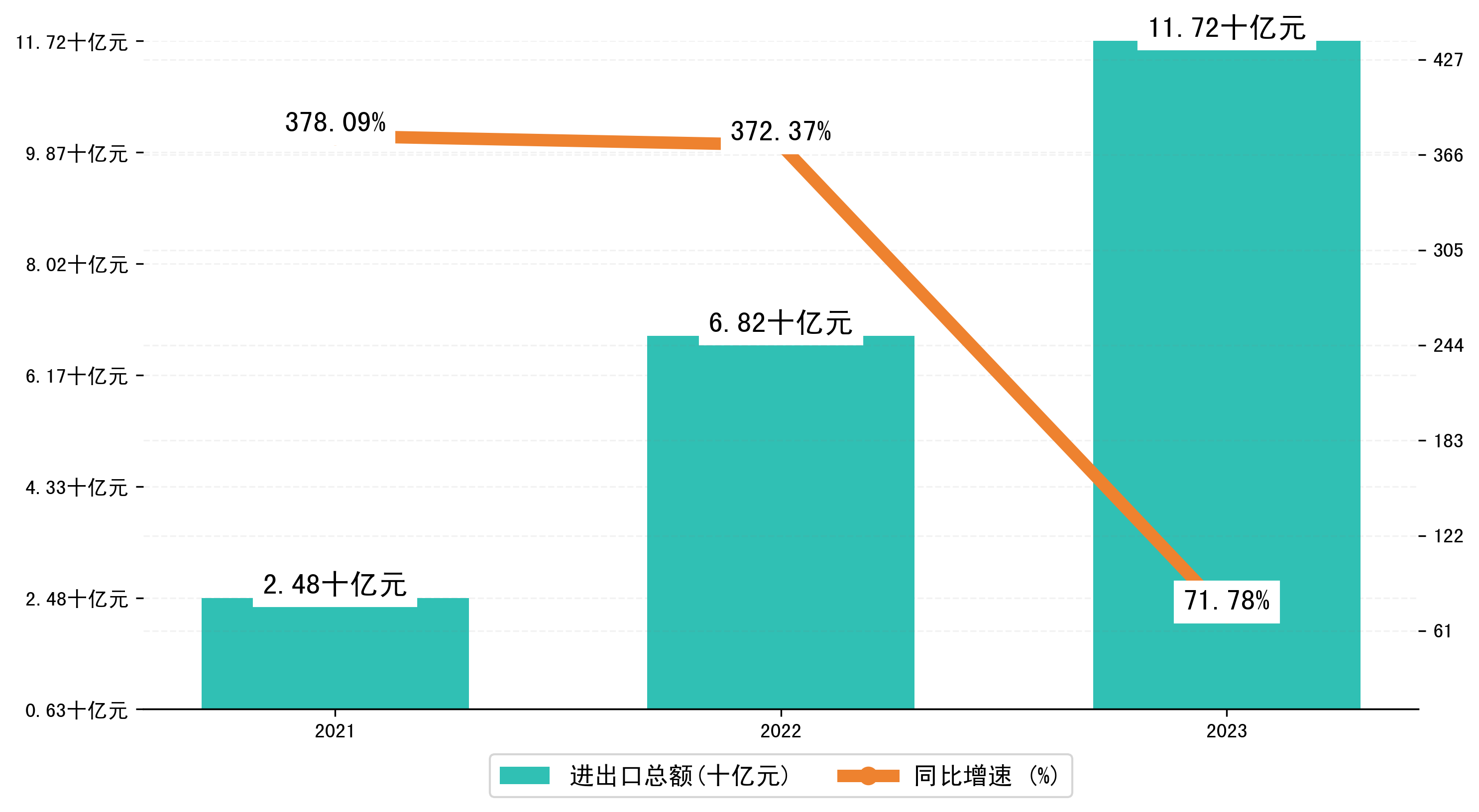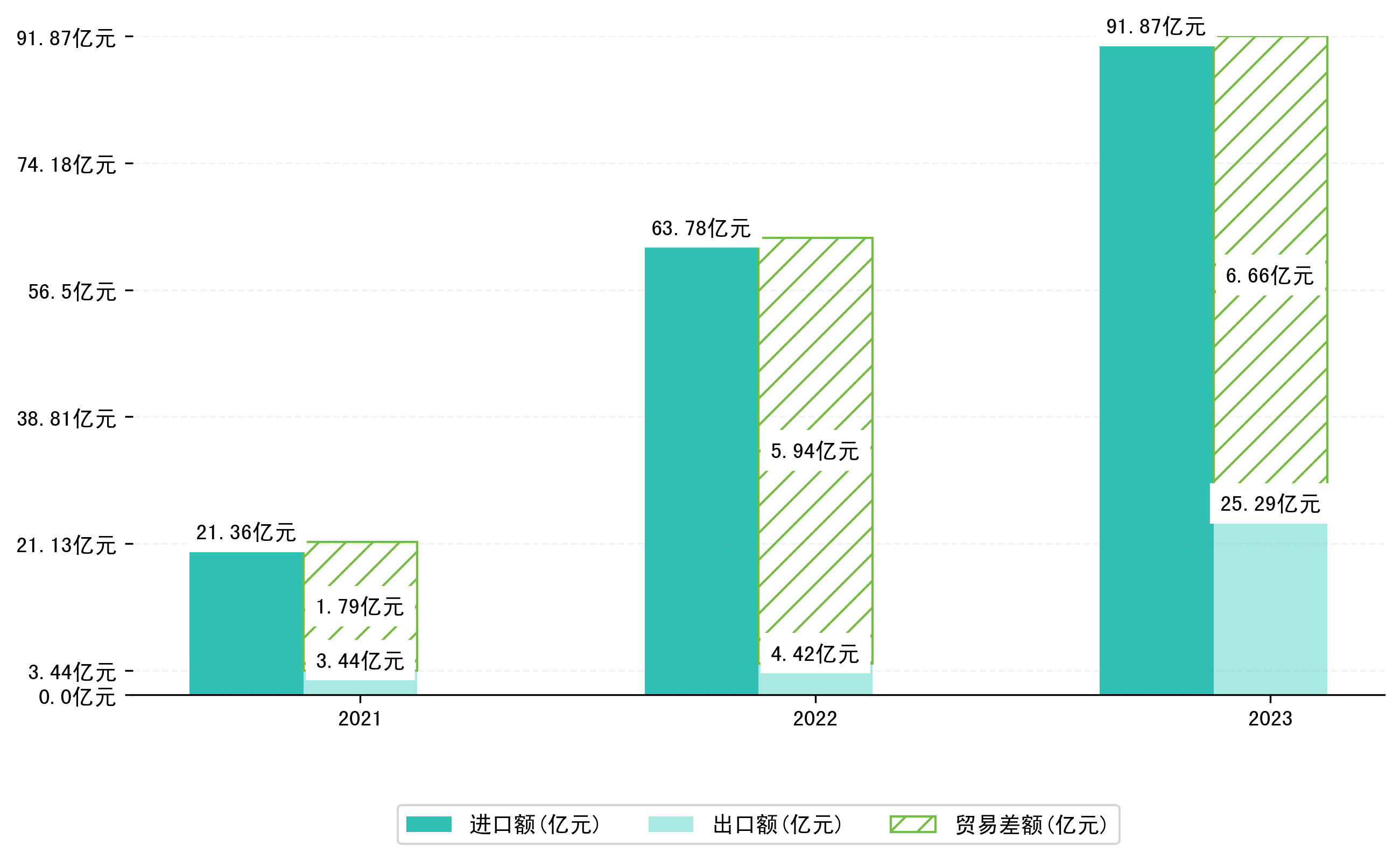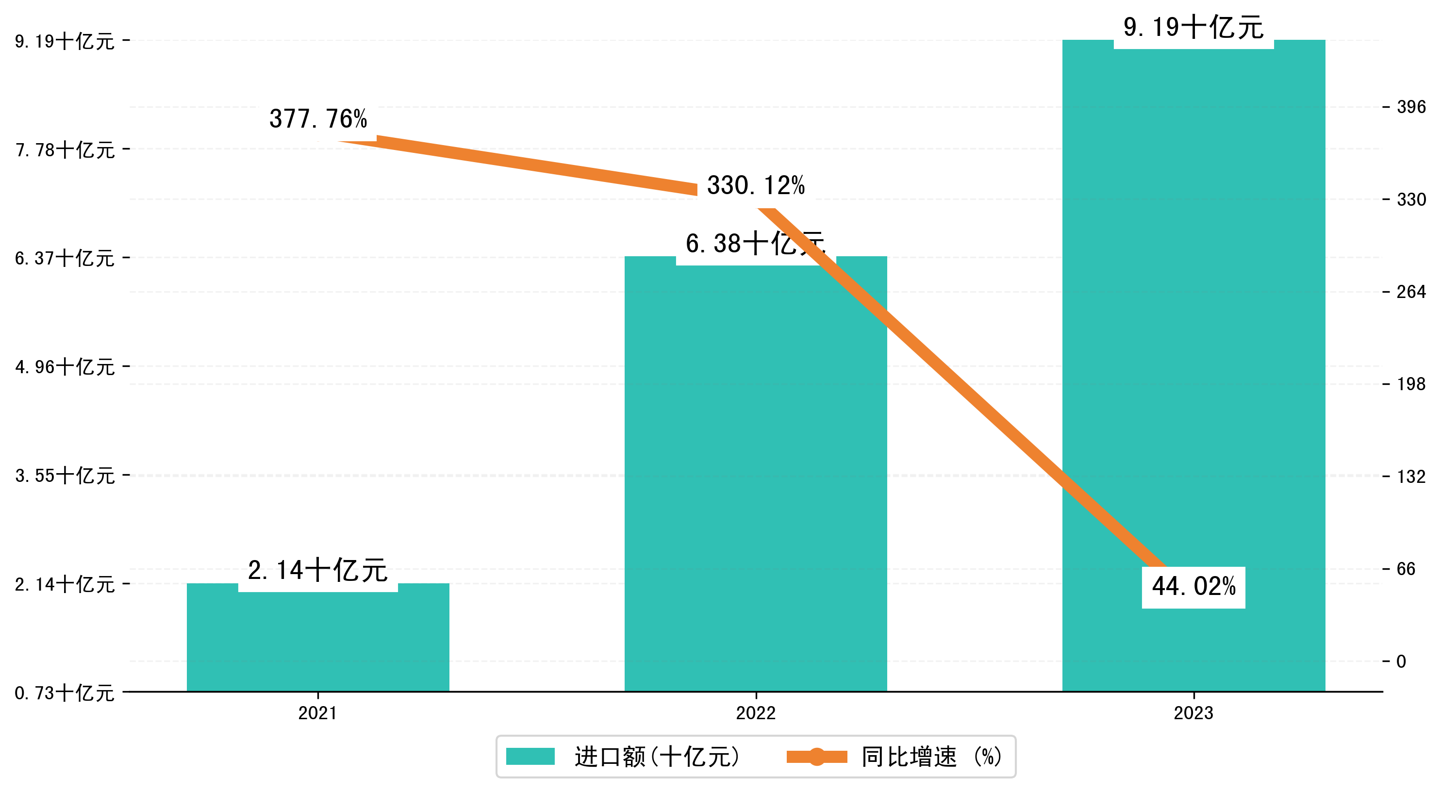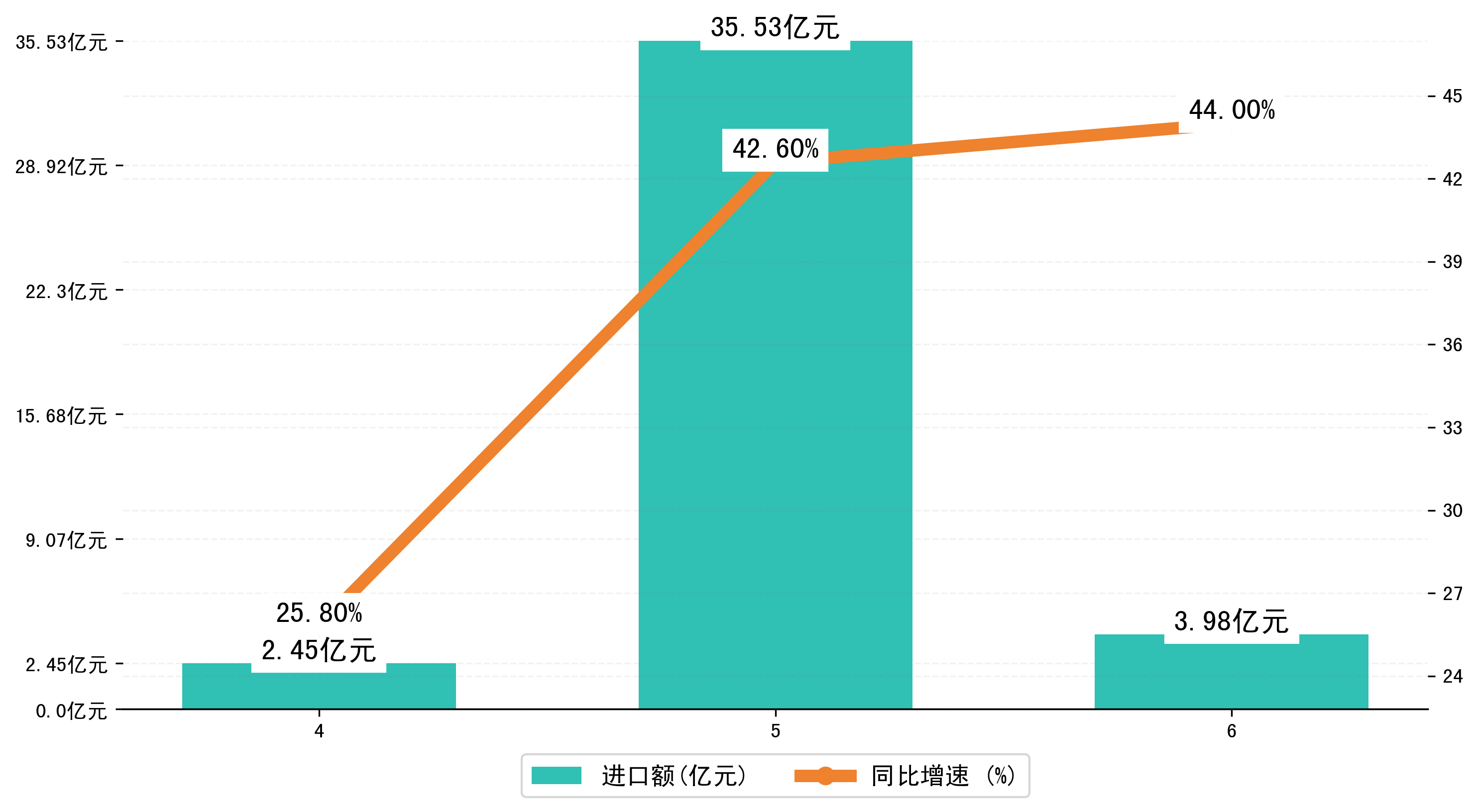 以美元计,2023年1-6月黑河市进口额为13,4485.3228万美元,相比上年同期增加了3,4667.4849万美元,同比增加34.70%。