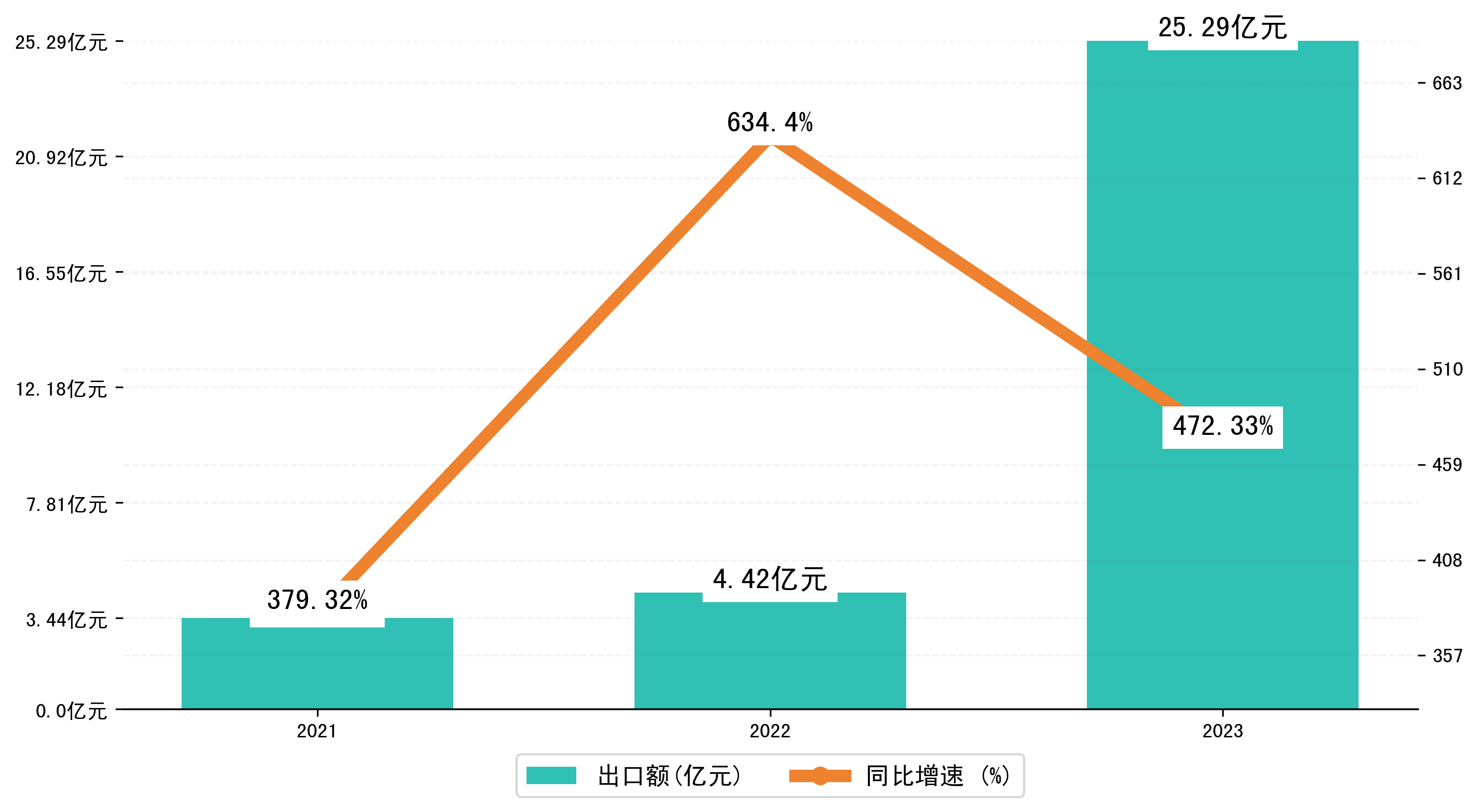 以人民币计,2023年1-6月黑河市出口额为25,2936.5634万元,相比上年同期增加了20,8742.0034万元,同比增加了472.50%。