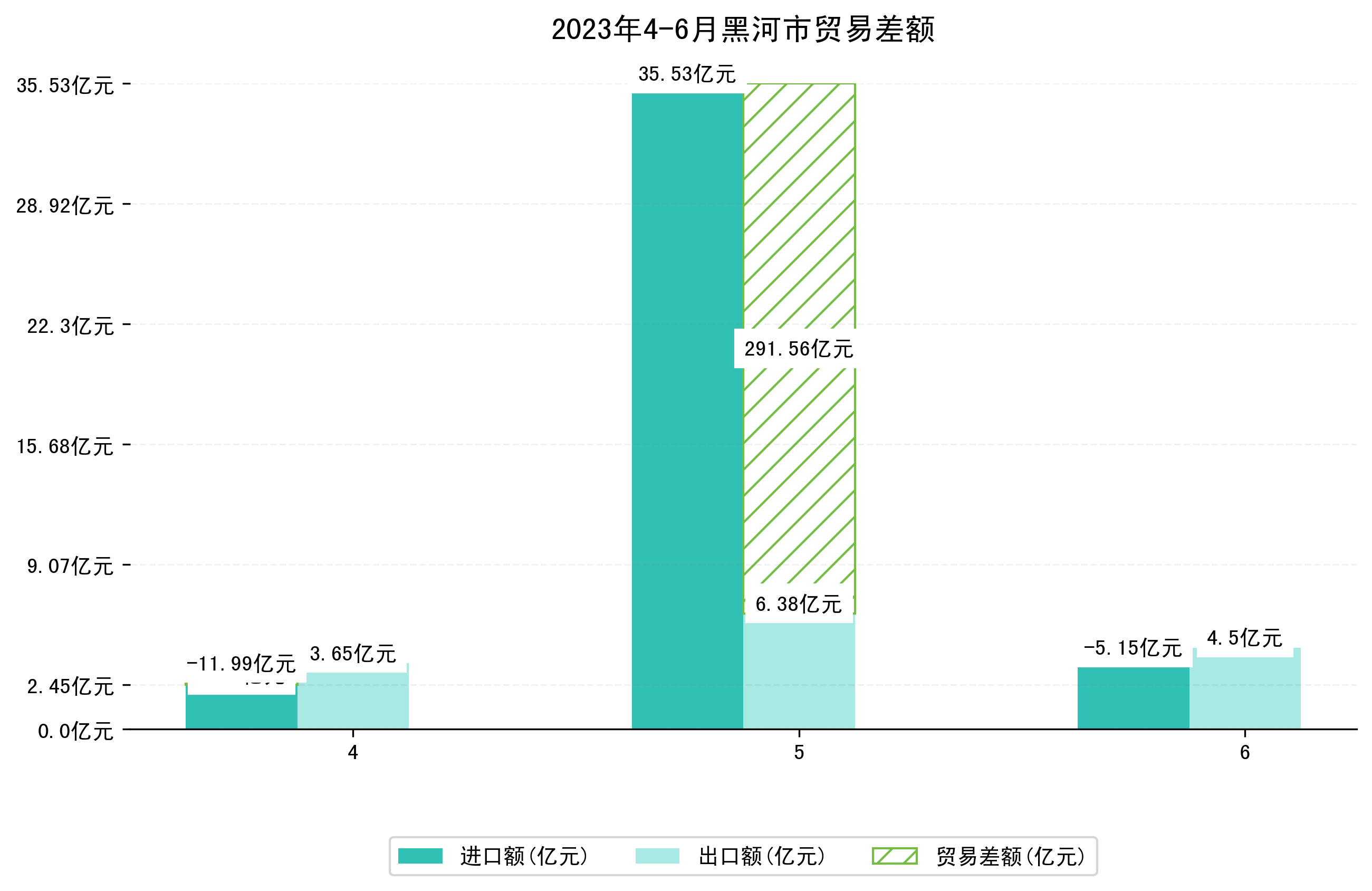 2023年6月黑河市进出口总额及进出口差额统计分析