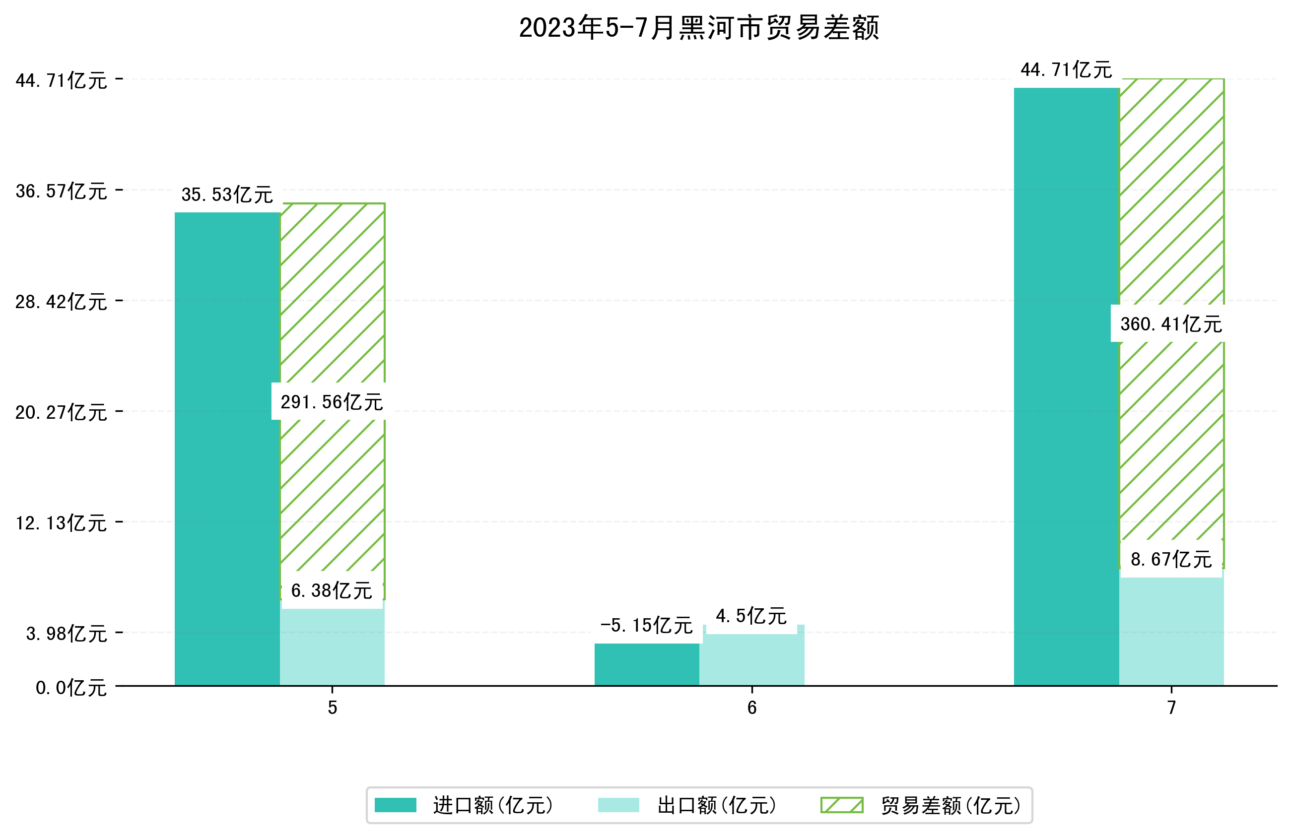 (图一:2023年5-7月黑河市进出口总额)