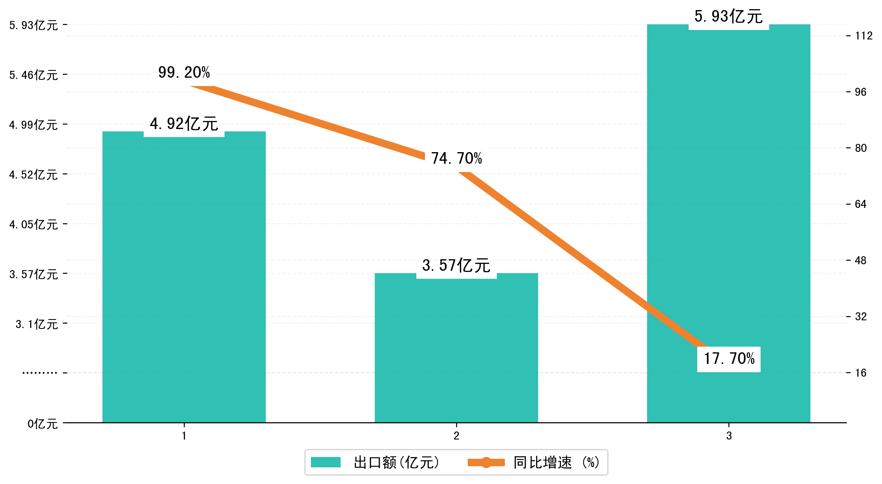 以美元计,2025年1-3月黑河市出口额为2,0084.5487万美元,相比上年同期增加了2843.8358万美元,同比增加16.50%。
