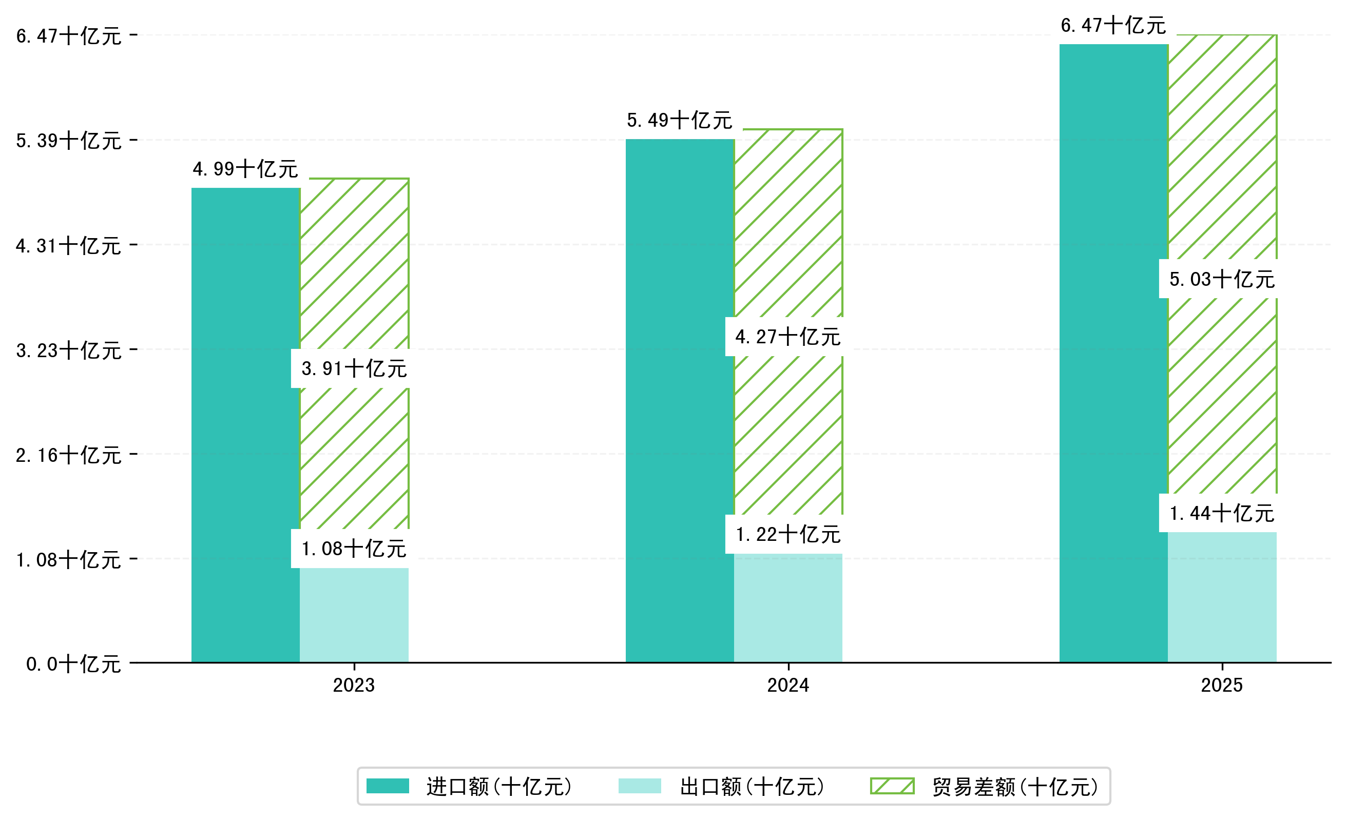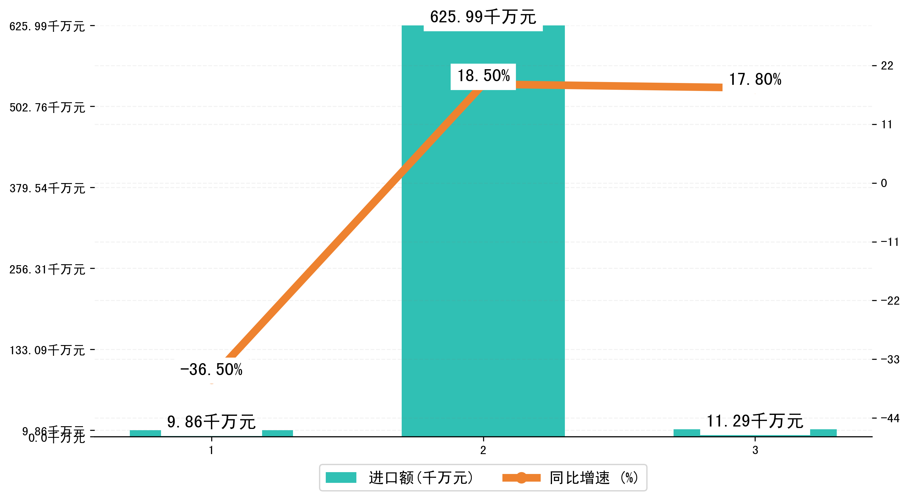 以人民币计,2025年1-3月黑河市进口额为64,7143.5627万元,相比上年同期增加了9,7710.6946万元,同比增加了17.80%。