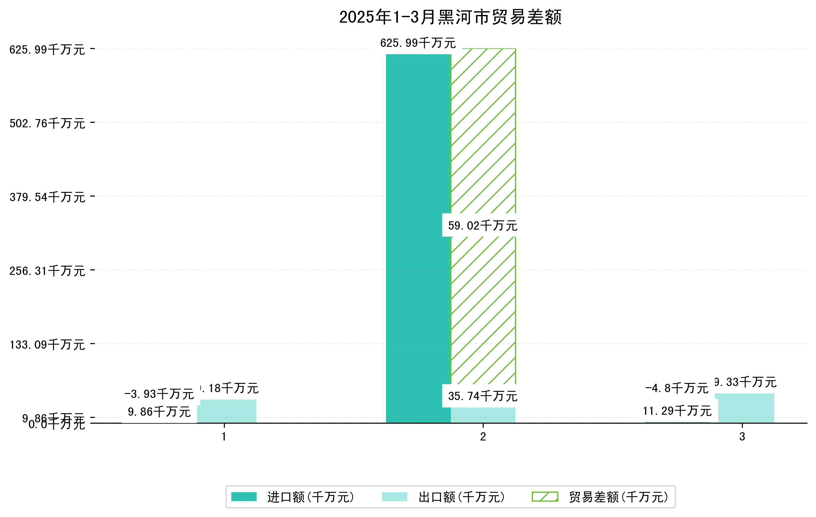 2025年3月黑河市进出口总额及进出口差额统计分析
