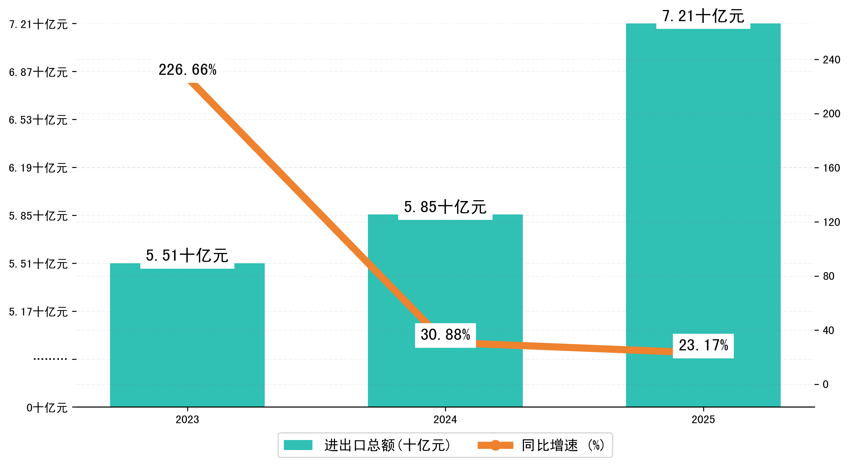 以人民币计,2025年1-2月黑河市进出口总额为72,0771.3345万元,相比上年同期增加了13,5583.6051万元,同比增加了23.20%。