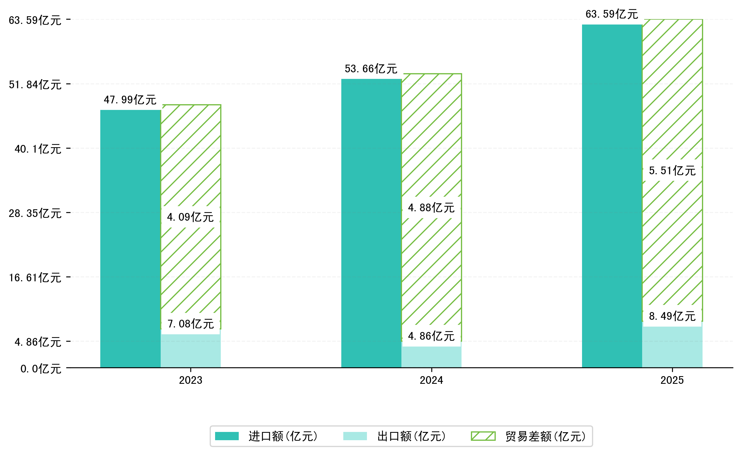 以美元计,2025年1-2月黑河市贸易差额为7,6646,0117万美元(贸易逆差),相比上年同期减少了8080,5539万美元,同比减少11.79%。