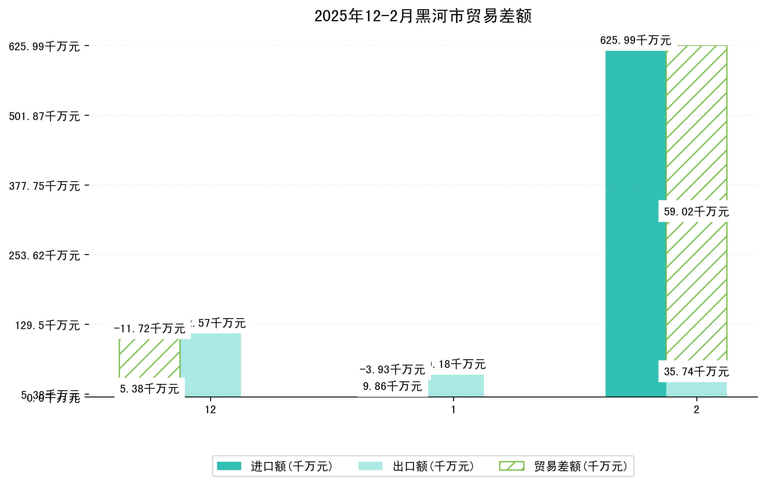 2025年2月黑河市进出口总额及进出口差额统计分析