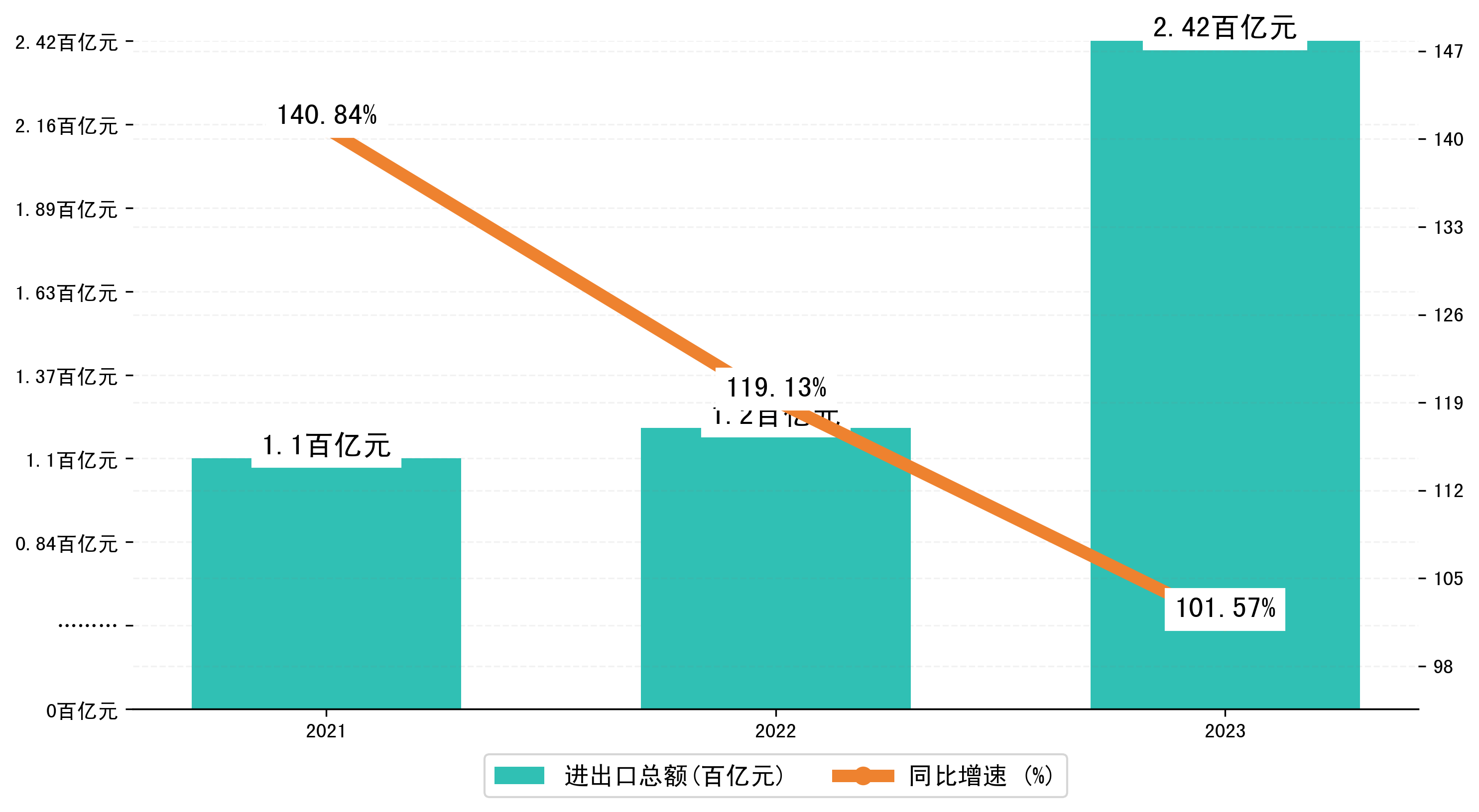以人民币计,2023年1-5月衡阳市进出口总额为242,0395.2192万元,相比上年同期增加了121,9607.8234万元,同比增加了103.40%。