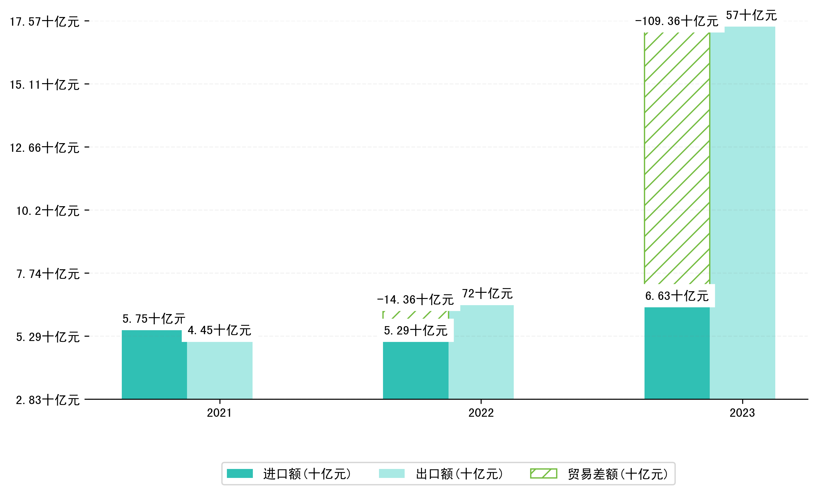 以人民币计,2023年1-5月衡阳市贸易差额为109,3594,4788万元(贸易顺差),相比上年同期增加了94,9955,7649万元,同比增加661.35%。