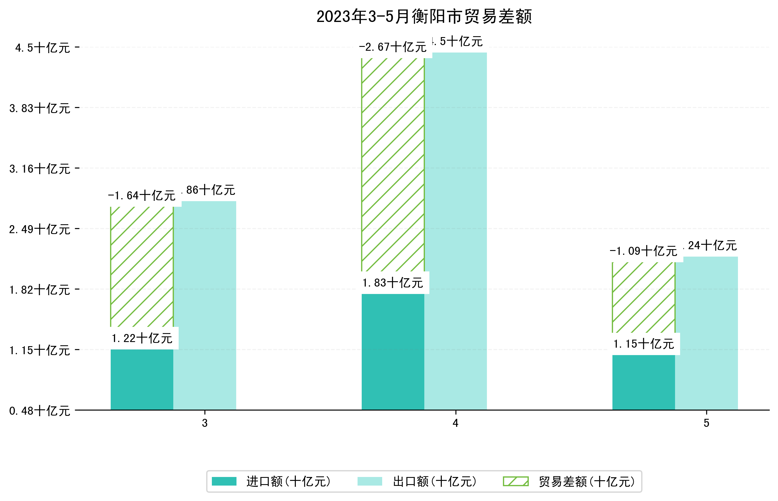 2023年5月衡阳市进出口总额及进出口差额统计分析