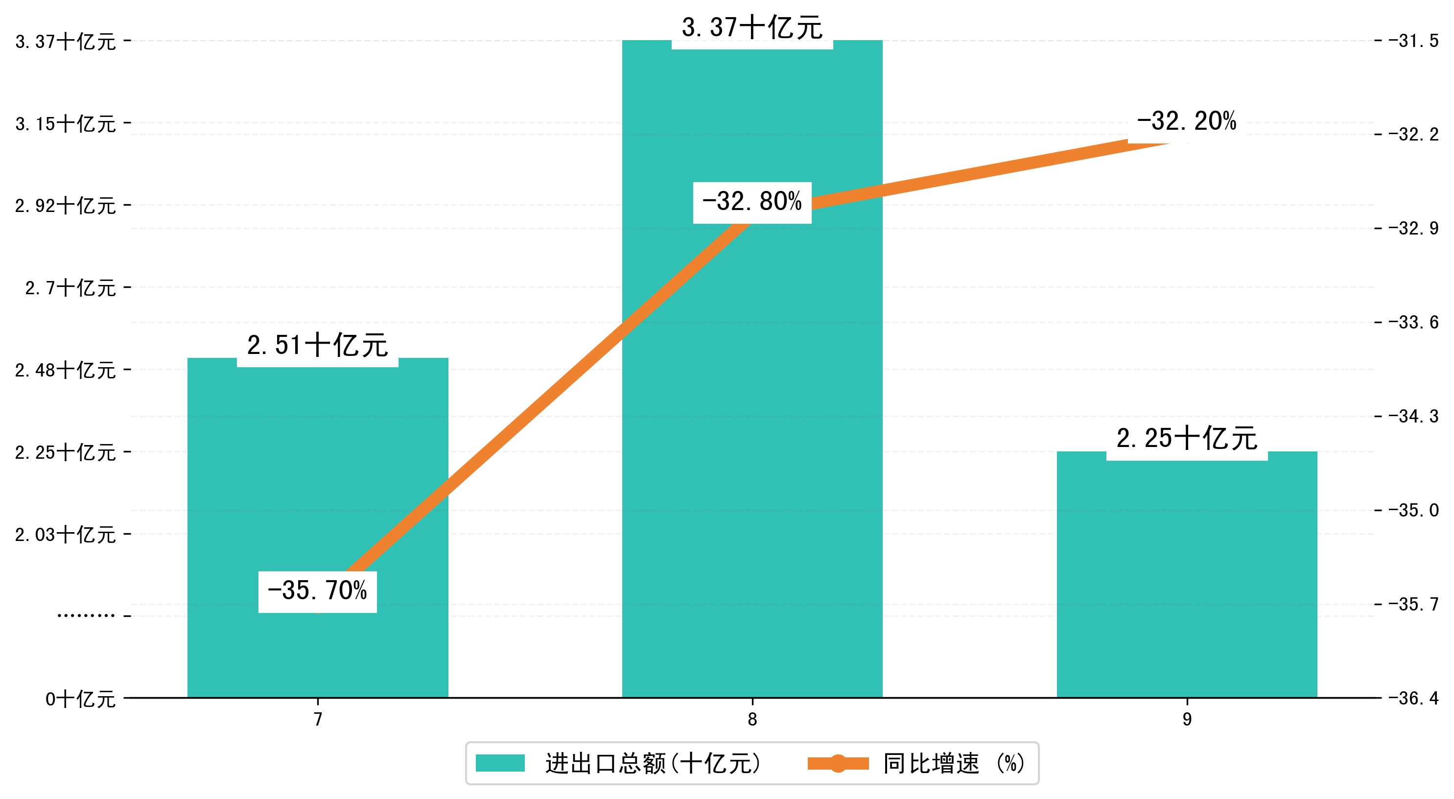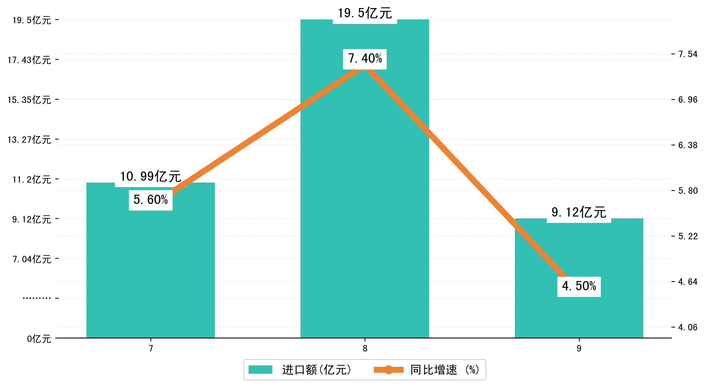 以美元计,2024年1-9月衡阳市进口额为18,3613.7016万美元,相比上年同期增加了2078.8317万美元,同比增加2.90%。
