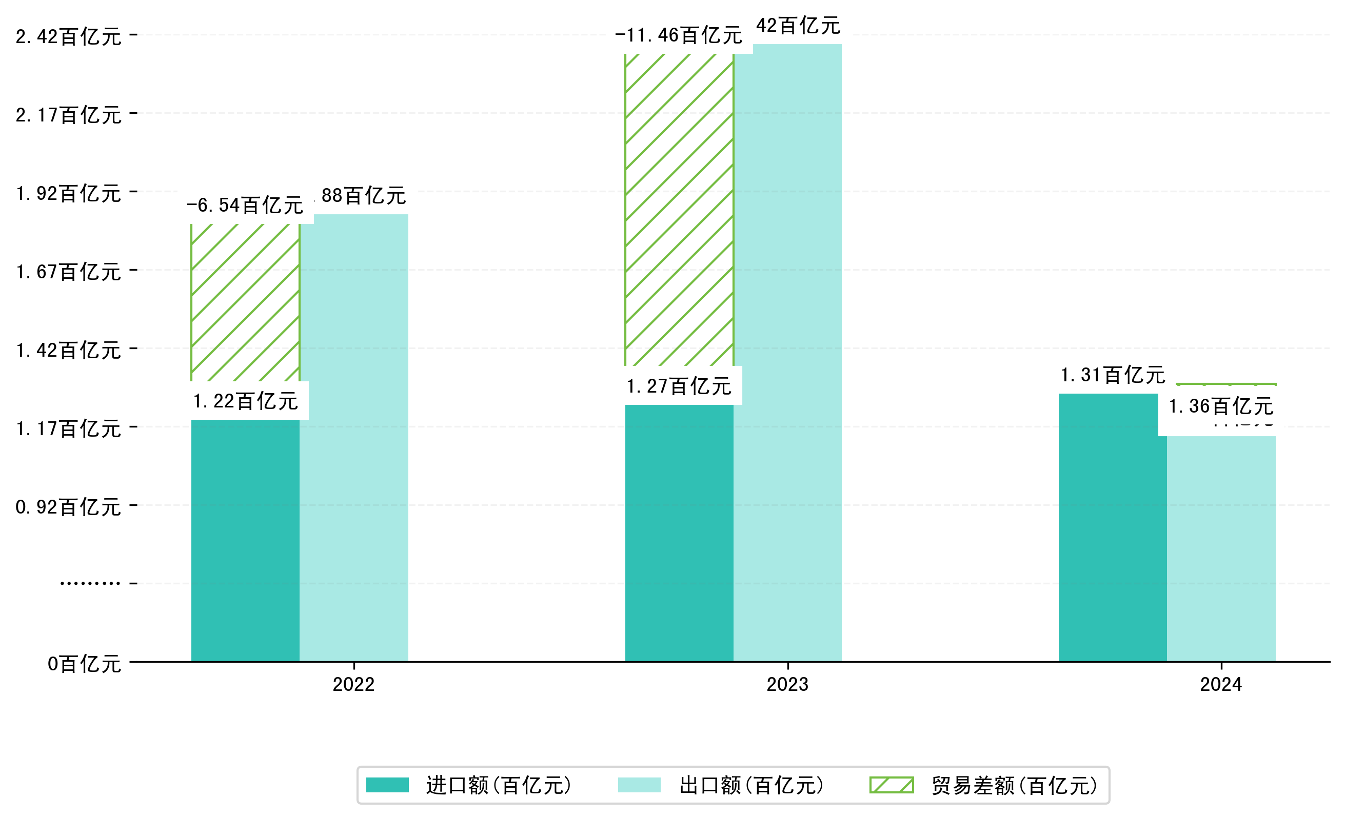 以美元计,2024年1-9月衡阳市贸易差额为1,9091,8833万美元(贸易逆差),相比上年同期减少了18,5593,8113万美元,同比减少-111.47%。