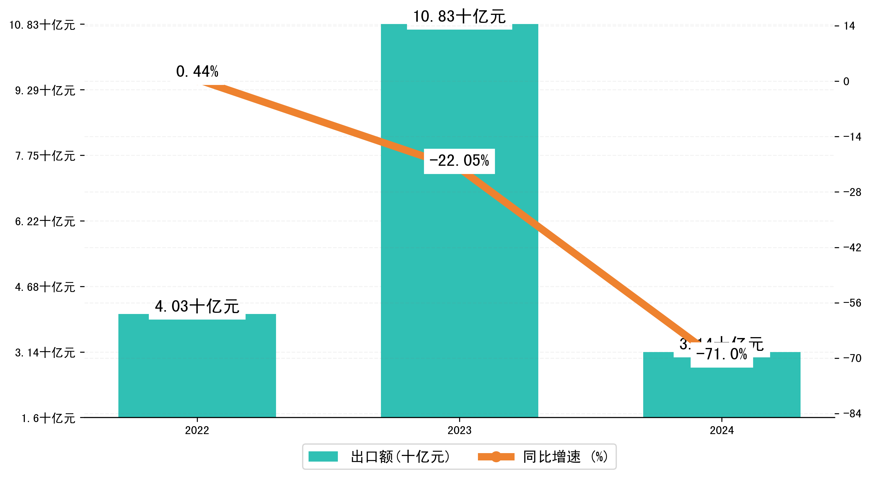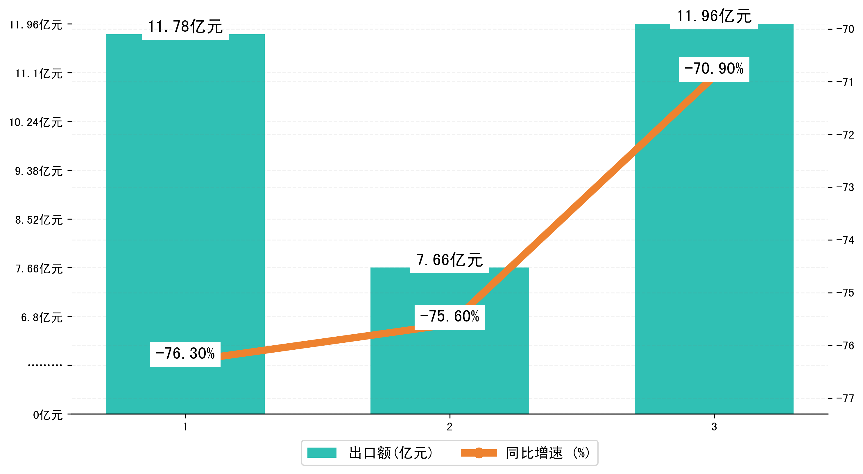 以美元计,2024年1-3月衡阳市出口额为4,4181.1812万美元,相比上年同期减少了11,3207.059万美元,同比减少-71.80%。